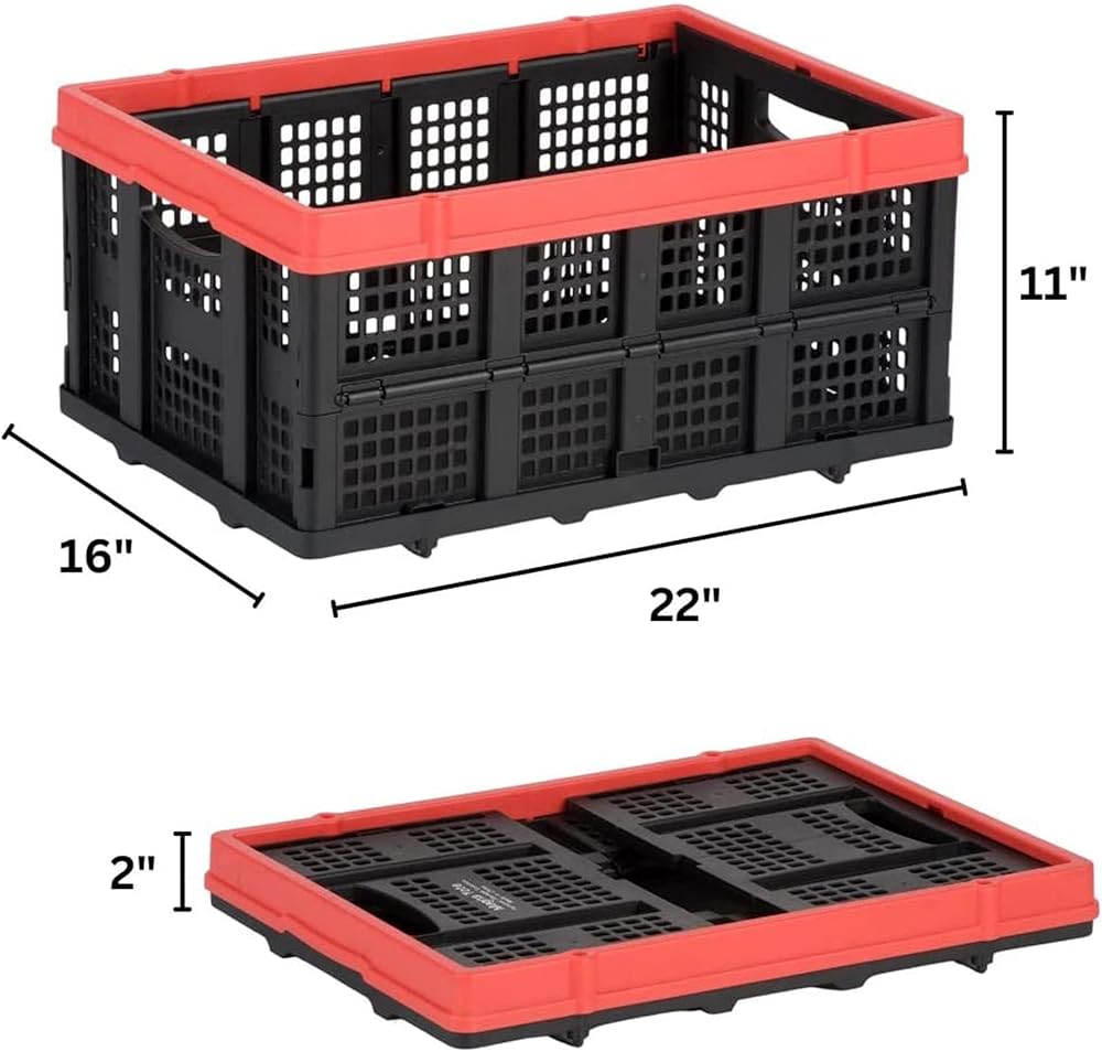 Efficiently organize your home office or garage space with the Collapsible Plastic Storage Crate from Magna Cart. Measuring 22 inches in depth, 16 inches wide, and 11 inches tall, this crate is specifically designed with your convenience in mind. Crafted from lightweight and durable plastic, this storage basket can support up to 60 pounds of equipment with 2 sturdy handles for easy carrying. Suitable for cleaning up various toys, books, magazines, linens, and tools, this versatile tote is an ideal addition to homes, offices, and outdoor garages. When space is tight, collapse the tote down 2 inches for convenient compact storage. The corners also allow you to stack other crates on top of the other to maximize vertical space. Carry your cargo safely, as this box crate is fully compatible with Magna Cart folding and platform trucks (sold separately). Declutter your things and save much-needed floor space with the Magna Cart Collapsible Plastic Storage Crate.