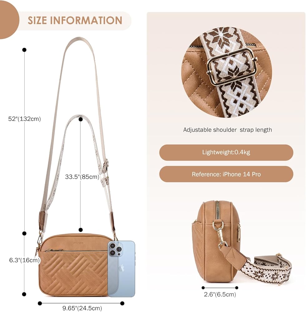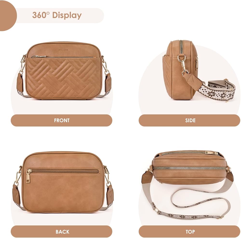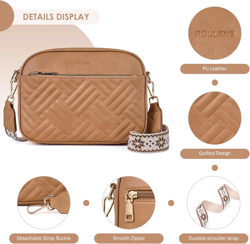 【Premium Vegan Leather】 Roulens crossbody bags for women features quilted design and soft PU leather material. Easy to clean & No any weird smell.Simple design, with gold tone hardware, smooth zipper, ensuring you can enjoy an elegant crossbody bag for a long time.