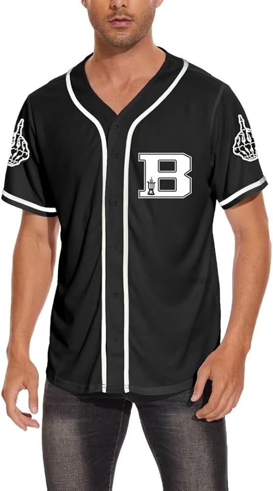 【Multi-Occasion】: men black baseball jersey are suit for spring, summer and fall seasons , aslo suitable for outdoor sports, baseball pairs, hip-hop parties, school activities, and other daily activities.