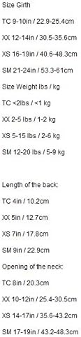 Size XX Small: Length of Back (5-inch/12.7cm), Open-inchg of the neck ( 10-12-inch / 25.4-30.5cm)