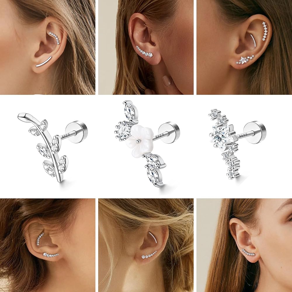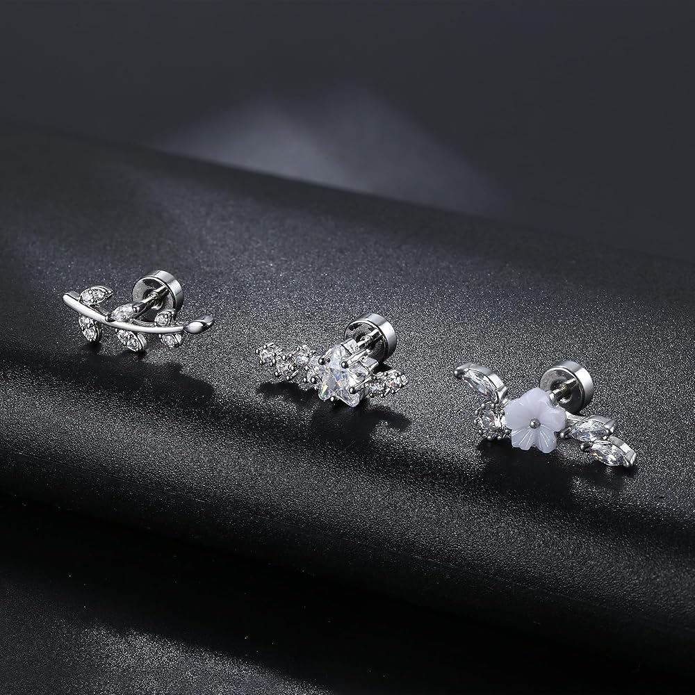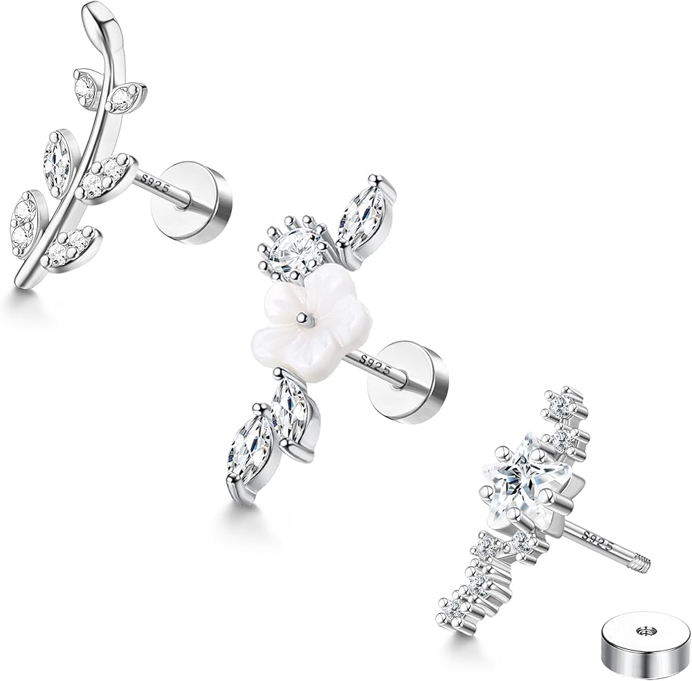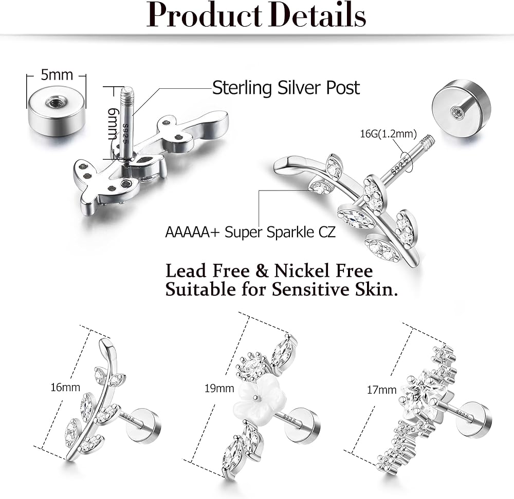 【أقراط غضروف من الفضة الإسترلينية】سوف تحصل على 3 قطع من الأقراط اللطيفة، بسيطة ومتألقة، يمكن استخدامها لأقراط الغضروف، وثقب الحلزون وثقب المحار، أضف لمسة من الذوق إلى أذنيك.
