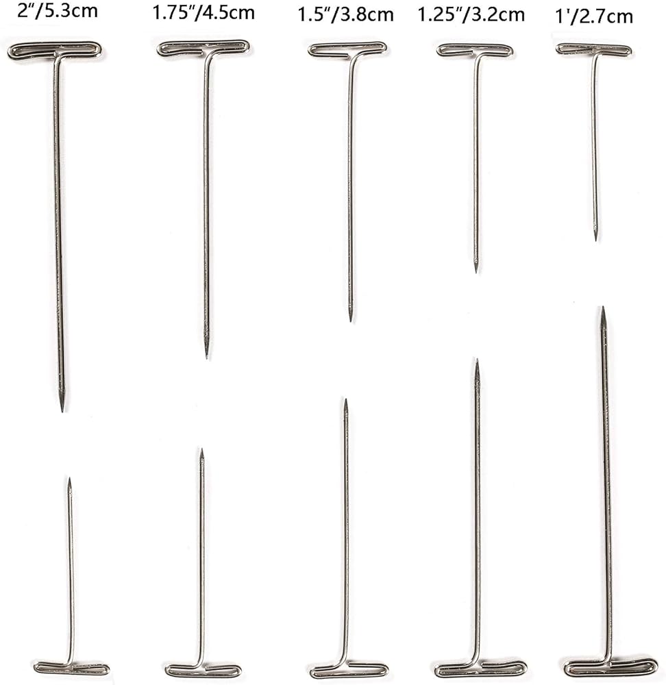 Gydandir 450 Pieces Nickel Plated Steel T-Pins Assorted Size 1 Inch, 1-1/4 Inch, 1-1/2 Inch, 1-3/4 Inch, 2 Inch