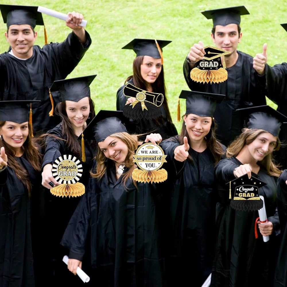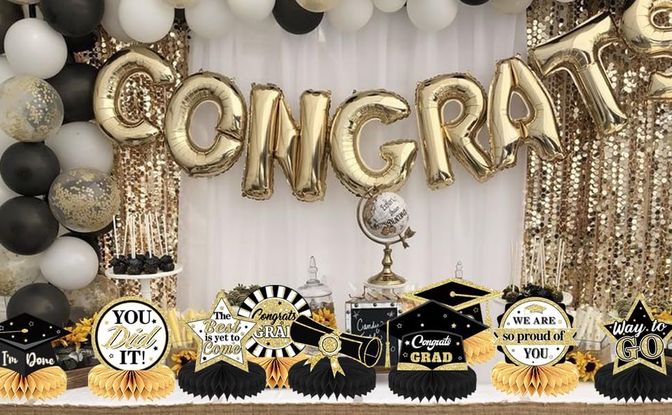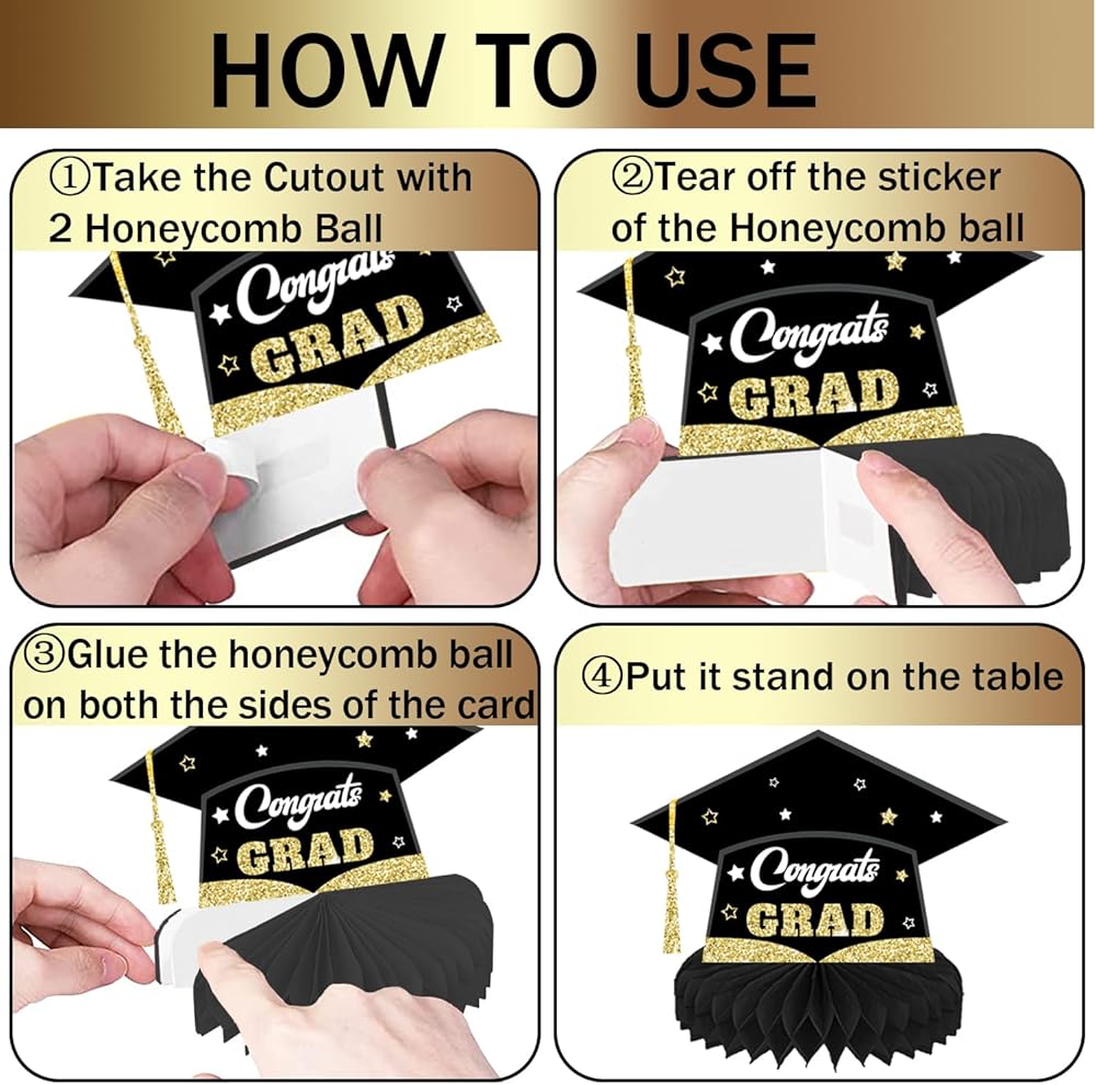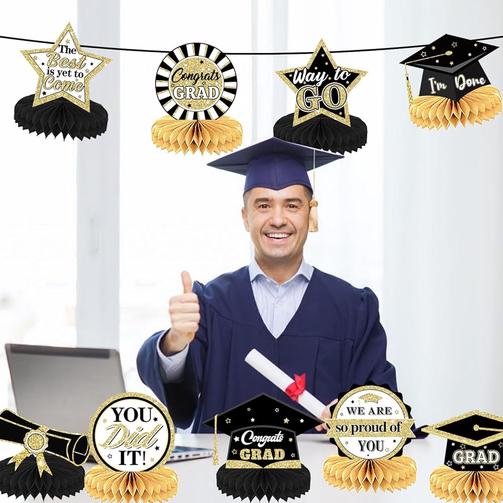 9-Pack Party Supplies, Birthday Party Decorations Honeycomb Centerpieces, Reversible Table Decorations Party Favors, Party Favors 1. Special design: 3D honeycomb style centerpieces, creative and innovative table decorations, make your party table more inviting and attractive when displayed, immerse your guests into the party! 2. Durable material: The honeycombs are made of high-quality paper, and the cards are printed on high-quality double-sided cardboard with a photo-like gloss, durable and non-toxic. 3. Double-sided printing: The cartoon pattern is made of thick cardboard, the honeycomb is made of thin paper, and it is printed with environmentally friendly ink, which will not fade and be durable 4. You will get: 10 x Assorted honeycomb centerpieces a spare glue point Precautions: 1. The product contains small stickers. Please be careful not to let children swallow it by mistake. Bring you and your family an unforgettable Graduation party, both boys and girls will love this decoration, perfect for cheerful party decorations with friends.