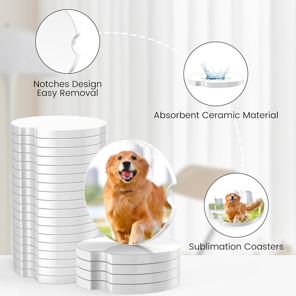【What You Can Get】Enough quantity sublimation car cup coasters, can meet your daily needs, enjoy the fun of the DIY crafting with your family and kids. The size of sublimation coasters is 2.67 inch in diameter and 3.2mm/0.12 Inch in thickness. There is a convenient notch on the side of the car coasters, which can be easily removed from the car cup holders for cleaning