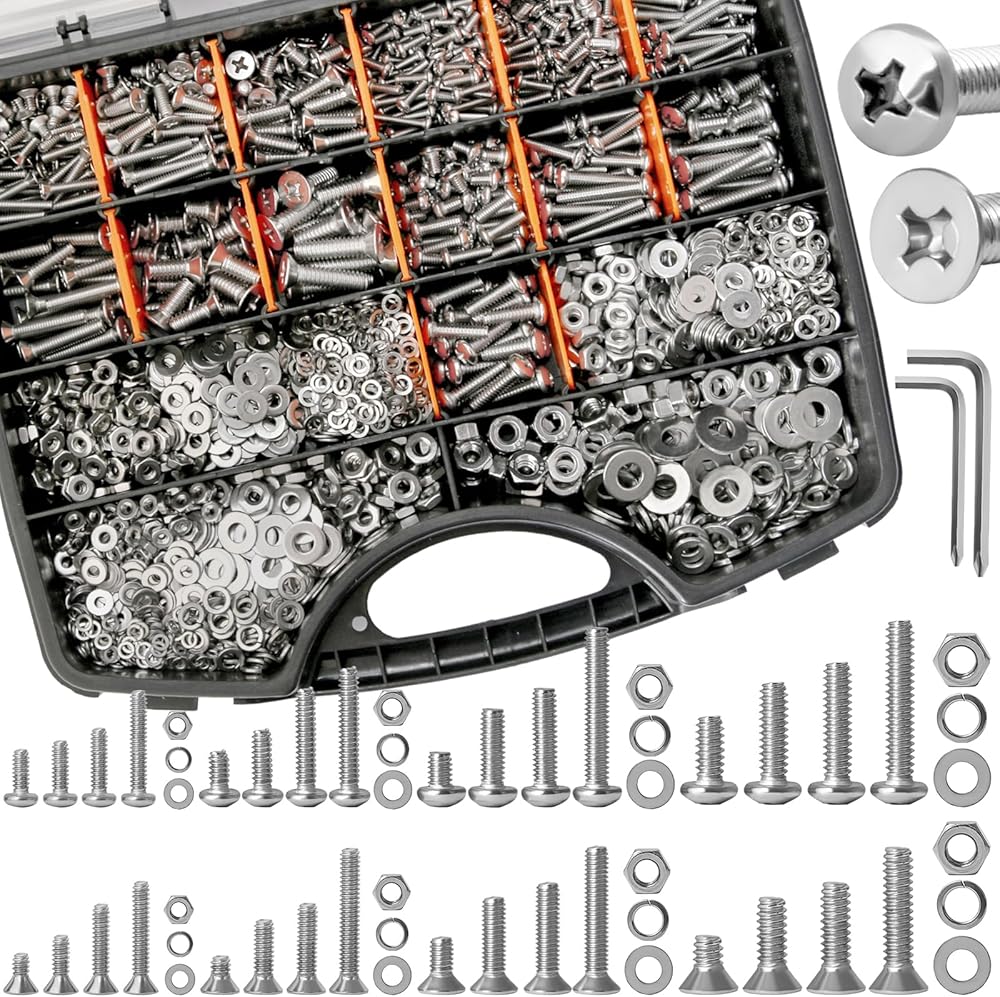 √ [High Quality 12.9 Grade Alloy Steel + More Than 20 Years of Experience in Fastener Tool Production] Nice Screws assortment, durable nuts and bolts. Extraordinary Technology & Professional & Durability. Machine screw assortment kit accord with standardized metric system, whether for your own use or as a gift to others, it is a good choice.