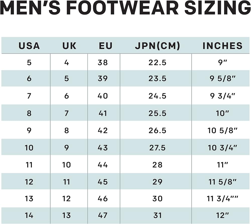 Men's shoe size conversion