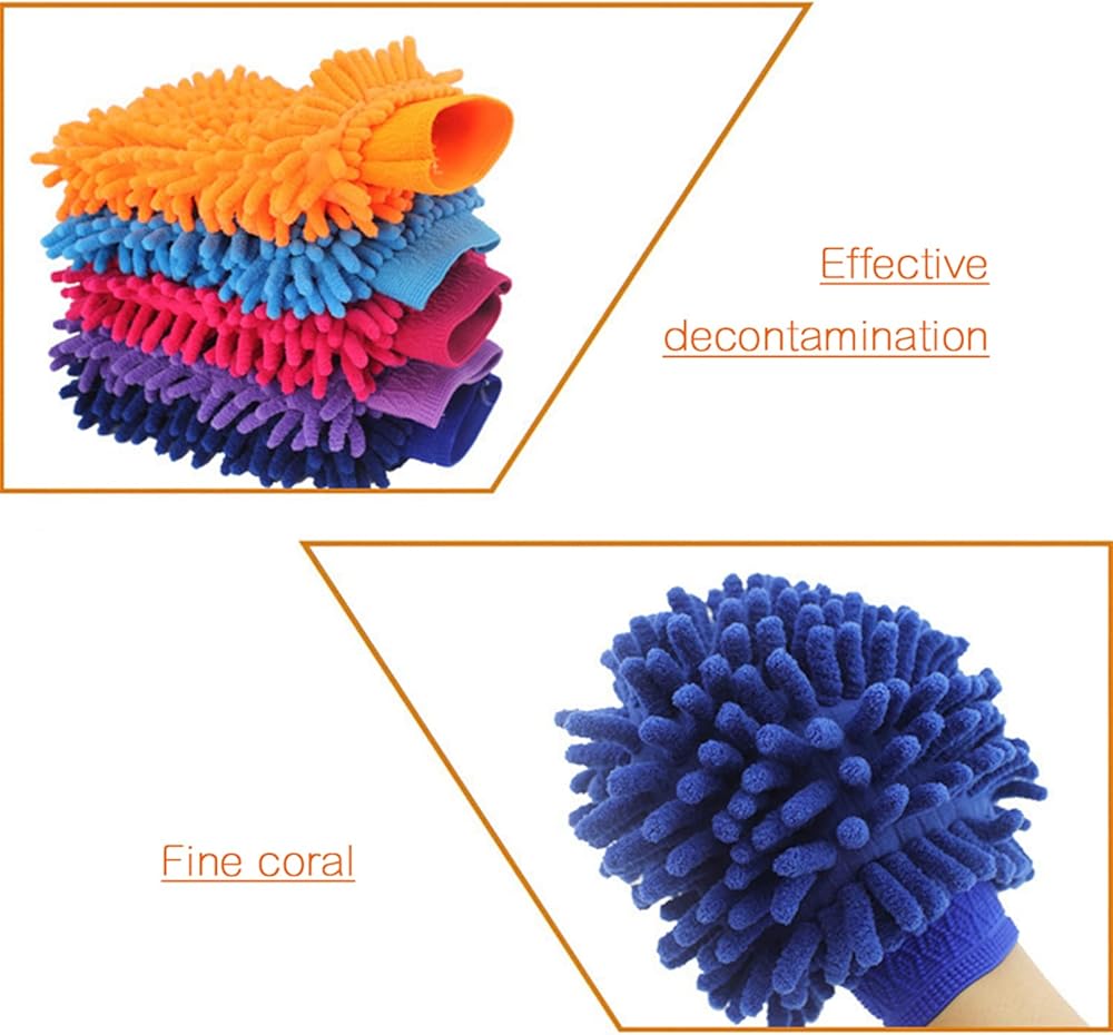 Car Wash Mitts,5 Pcs Portable Double Sided Microfiber Car Washing Gloves for Car Cleaning Mitts Tools Premium Chenille Scratch-Free Car Washing Gloves Car Wash Kit Accessories Rag Sponge,22*15cm