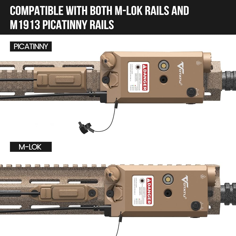Fits AR-type rifle/shotgun or carbine with a M1913 Picatinny or M-LOK rail system. Comes with push button and remote pressure switch, the pressure pad can be attached to Picatinny or M-LOK rail using the switch mounting plate included.