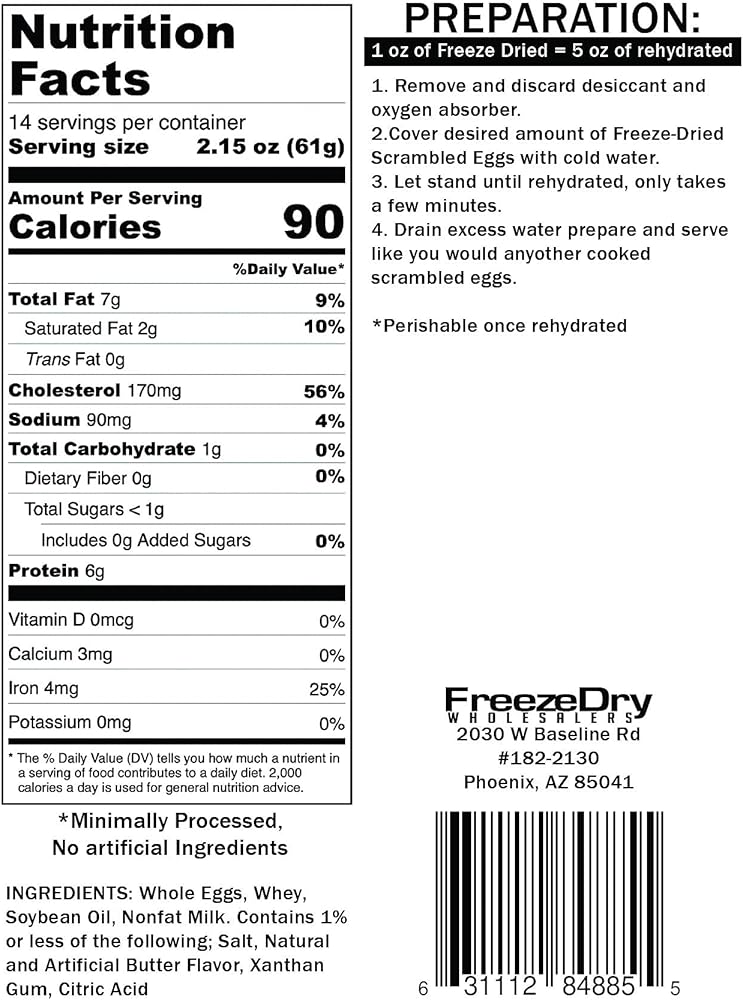 Freeze Dry Wholesalers Freeze Dried Scrambled Eggs Backpacking & Breakfast Camping Food | Emergency Food | Family Size | Fully Cooked