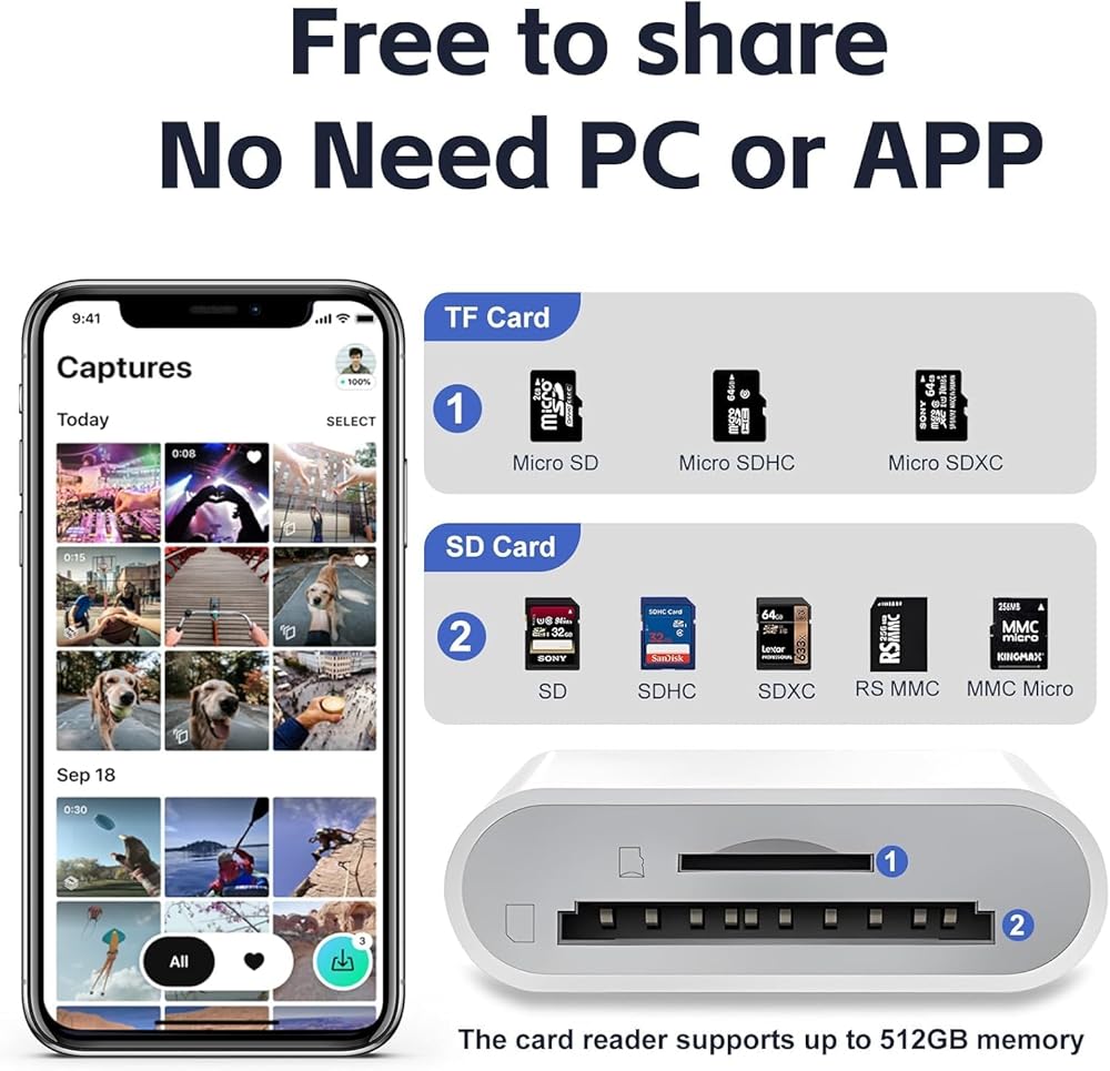 【Ultra Strong Compatibility】The USB C SD card reader compatible with all USB-C devices such as iPhone15/15 Pro/15 Pro Max iPad Pro 2022/2021/2020/2019/2018, iMac/iMac Pro 2017, MacBook/Pro/Air 2022/2021/2020/ 2019/2018, Samsung Galaxy S10/S9/S8/S8 Plus / S9 Plus /Note 8/Note 9, Chromebook /Pixelbook, Surface Book 2, Asus Zenbook, Dell XPS13/15, etc.