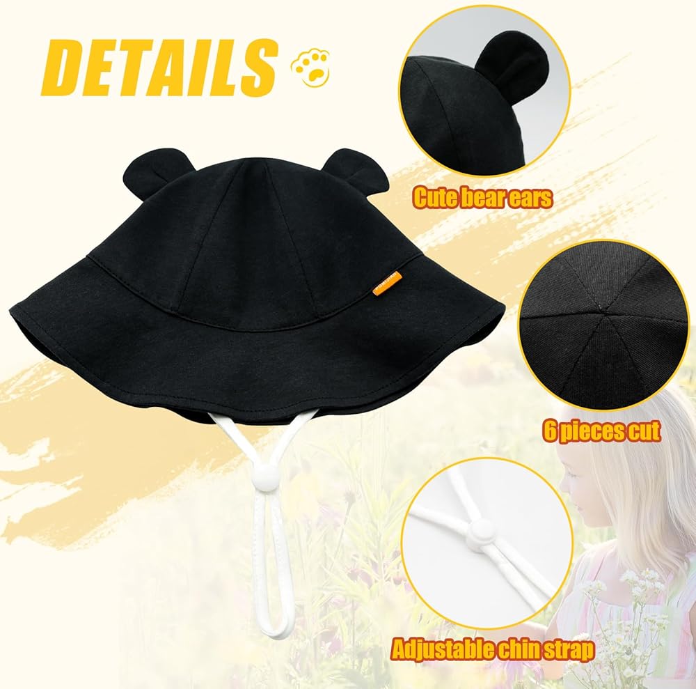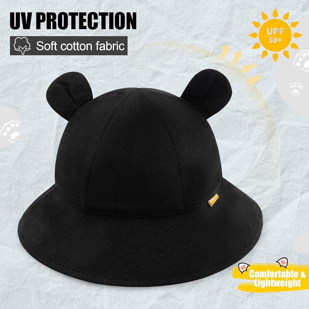 Cute Ears on Toddler Hat: The sun hats for toddlers have 6cm brim and cute bear ears design that protects baby's delicate face from the sun or cool wind while making them look super cute! Our hats are available in a variety of classic solid colors to match any of your baby's swimsuit or everyday outfits. The baby girl sun hat is must-have summer accessories.