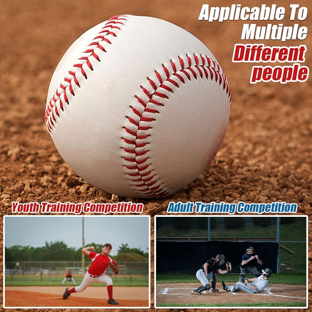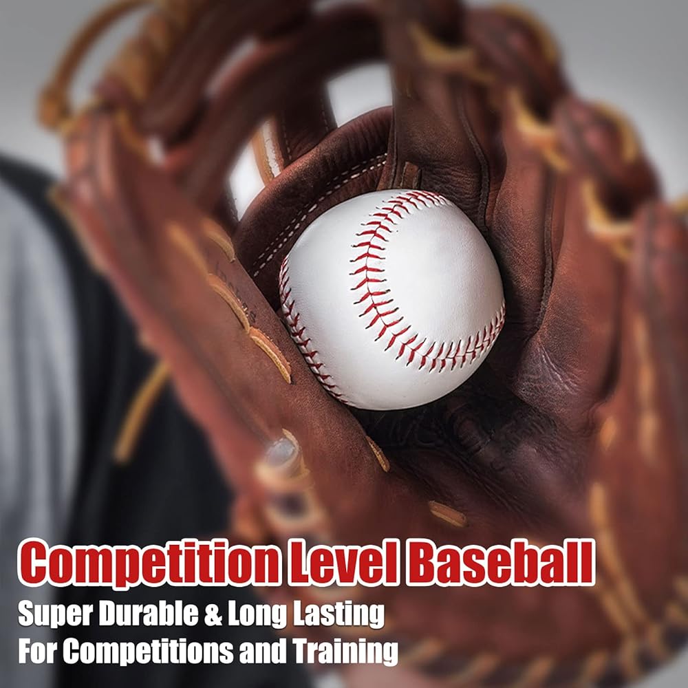 ⚾【DURABLE COMPETITION BASEBALLS】: Our Baseballs can withstand a lot of times batting practices without warping or splitting, which is best choice for any level ability level person. Durable leather cover allows players to continually train with these baseballs. The baseball balls is easy to grip while throwing, great for both pitching, fielding and hitting practice.