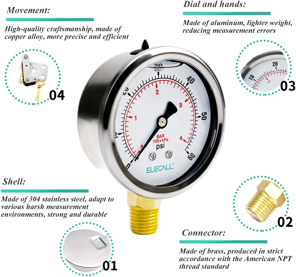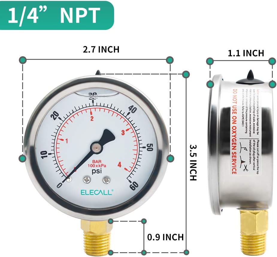 - 【Size】2-1/2" Dial, 1/4" NPT lower mount