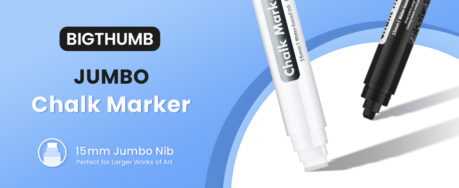 Perfect for Any Non-porous Surface: BIGTHUMB liquid chalk markers are perfect for chalkboards, glass boards, bistro & and cafe menus, and even car mirrors. These black white chalk markers bring creativity to metal plastic glass and any non-porous surface.