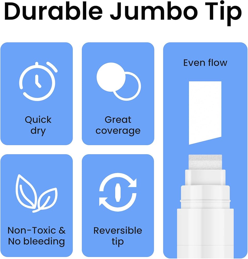 Effortless Creation: Whether you're a student, a teacher, an artist, or a business owner, these jumbo washable markers make creating beautiful messages and designs a breeze. These big window chalk markers great presents for Christmas, Birthday, Mother's Day, Easter Day, Children's Day, Halloween, Thanksgiving Day, Party, New Year, or a special holiday gift.