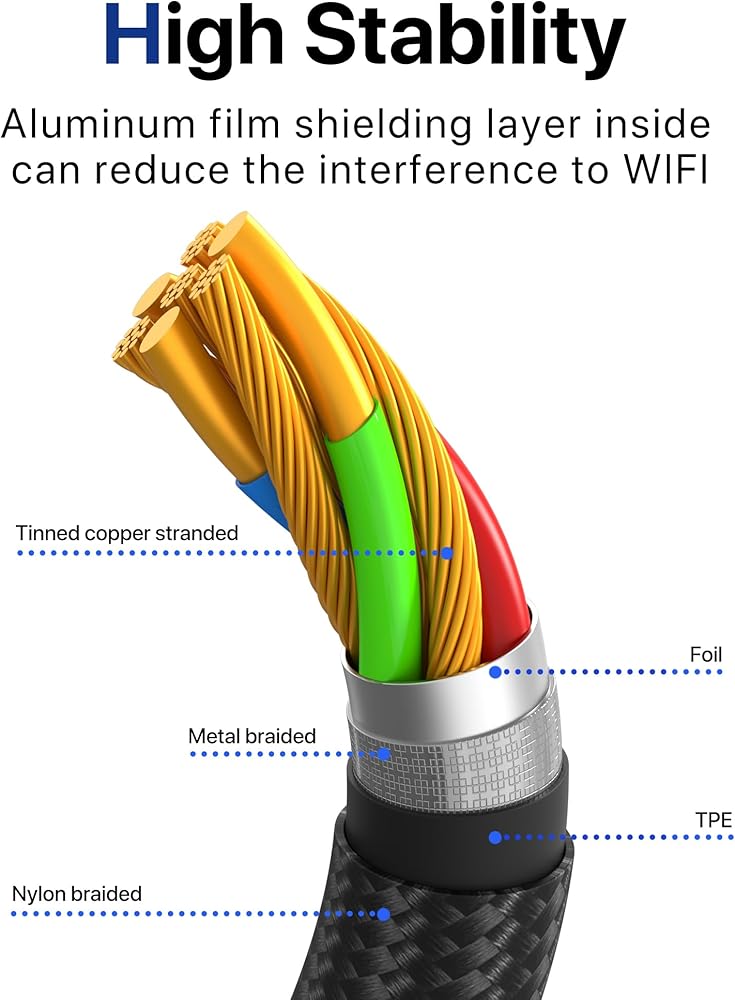 User-friendly Design: Built with tangle-free nylon braid design, 10,000+ flex life and double braided nylon housing gives the otg cable added durability to prevent wear and tear. Rugged, scratch-resistant aluminium alloy body provides superior heat dissipation, protects internal components and ensures consistent performance.