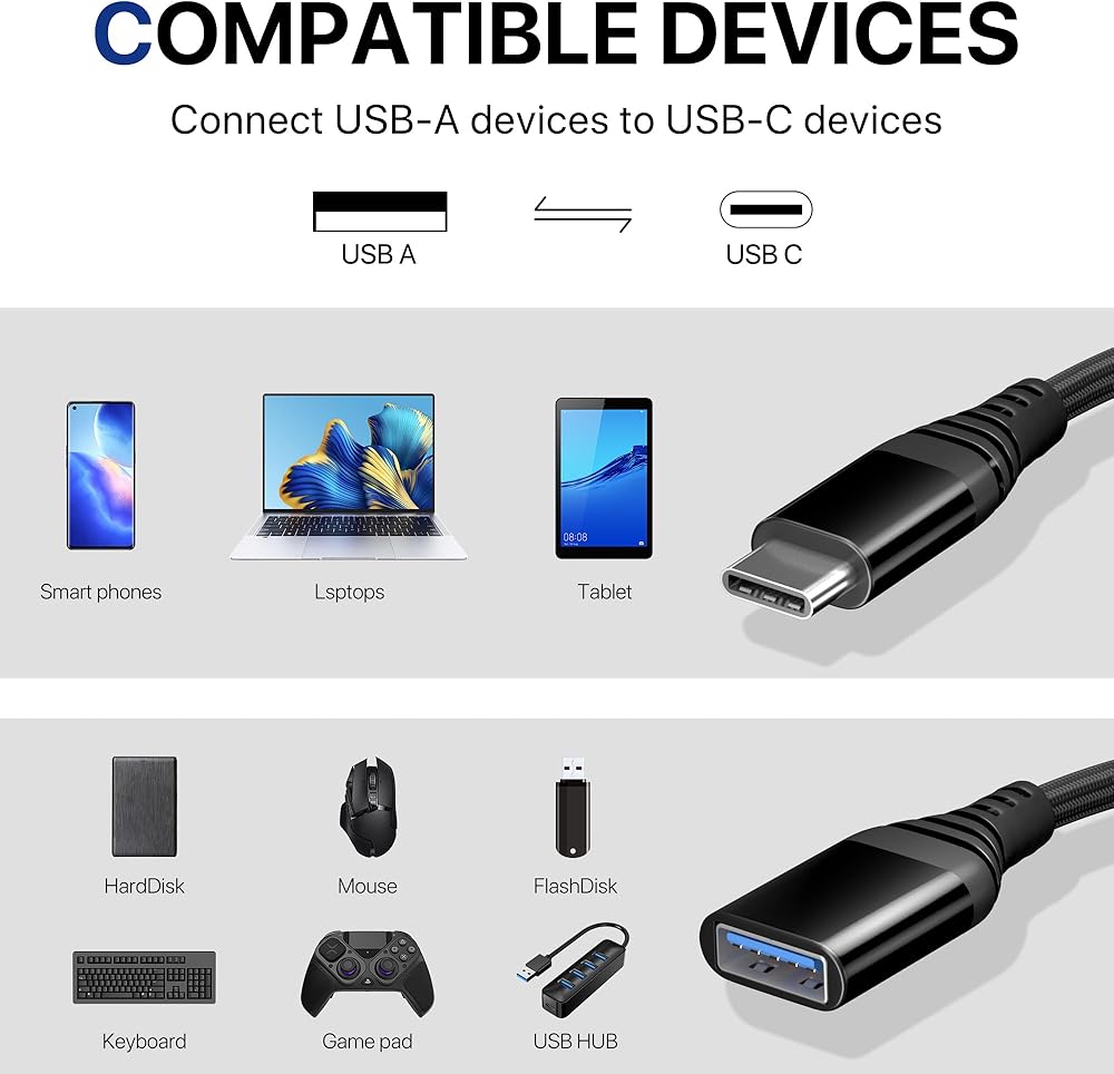 Universal Compatibility: Compatible with all USB Type-C port devices including iPhone 15/15 Pro/15 Plus/15 Pro Max, Macbook Pro 2023/2022, iPad Pro 2023/2022, Samsung Galaxy S24/S23, Dell XPS 17/XPS 15/XPS 13 2020, Dell Latitude 9000/7000/5000,Dell Inspiron 14/15 5000,Dell Alienware Area-51m/m 15/17 Area-51m,Surface Book, HP ,Asus ZenFone 8/7/6 ,Acer Liquid Z6 Plus/Iconia Tab,Google Pixelbook/Pixelbook Go, Pixel 4a/Pixel 4 XL/Pixel 3/Pixel 2 XL,or any other smartphone/laptop/tablet with USB-C/Thunderbolt 3 port. Laptop/Tablet. (Note: Please make sure your device supports OTG)