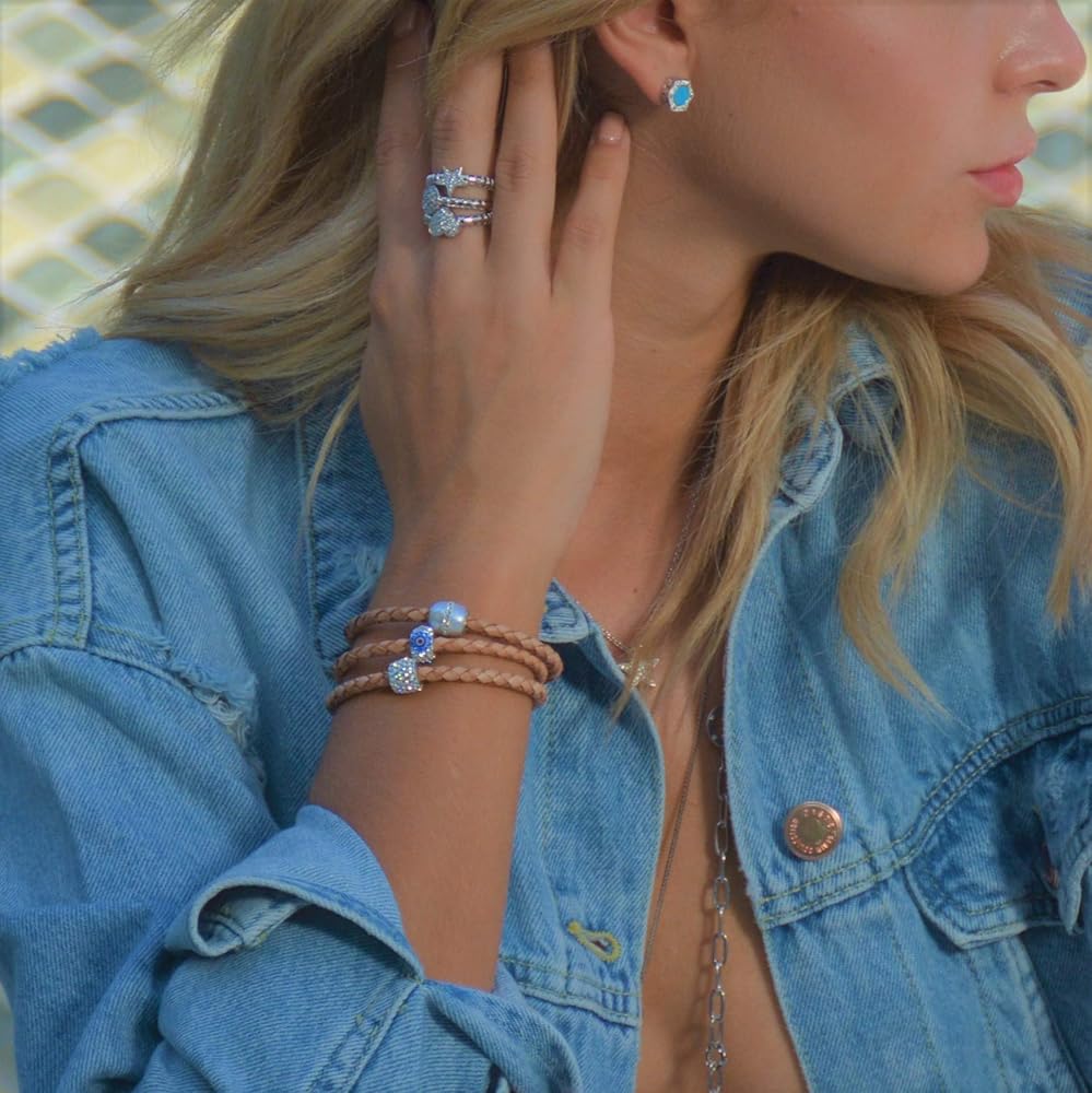 Liza Schwartz Jewelry Crystal Bedazzle Rich Braided Premium Leather Bracelet for Women in Silver, White, Camel and More Colors - Best for Birthday Gift