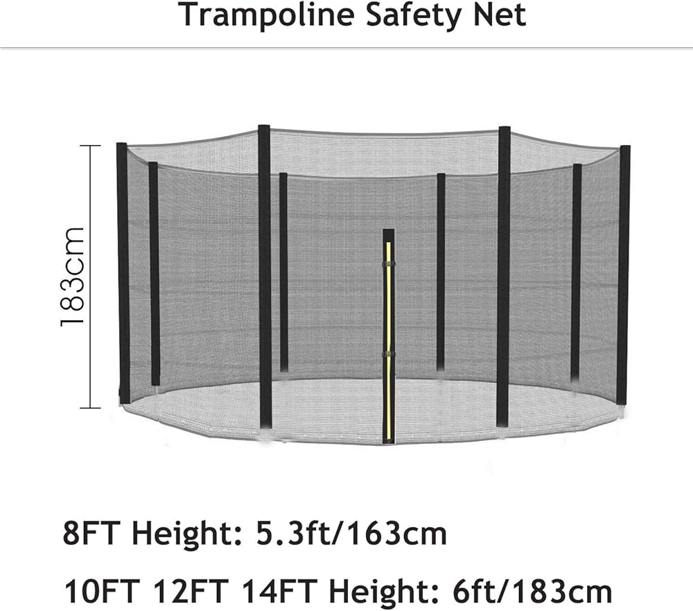 Fits for a 12 FT Trampoline Frame that uses 8 Straight Poles - NET ONLY. Net height: 183cm(6FT), Diameter of the sleeve:60mm(0.2FT).