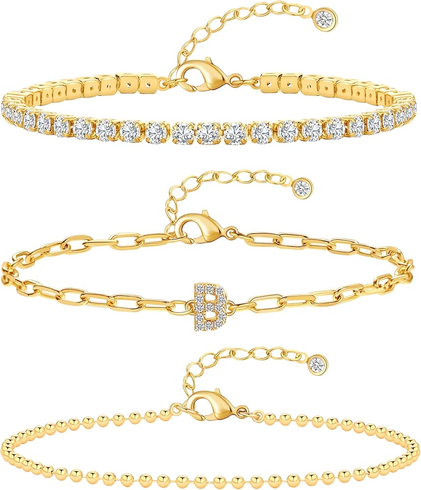 Initial Bracelets for Women:The gold bracelet set includes a zircon necklace, a ball bead necklace and an initial bracelet with A-Z letter, you can mix and match or just wear one.