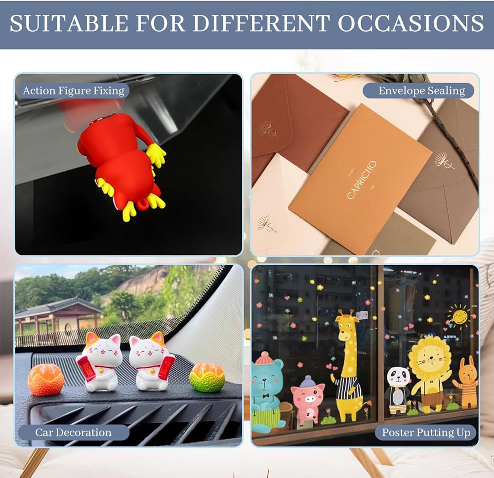 Versatile: Our sticky tack is suitable for all kinds of material surfaces, such as metal, glass and wood. The instant stick adhesive putty won't damage your crafts. You can use them to hold dolls and decorations, or use them as poster putty.
