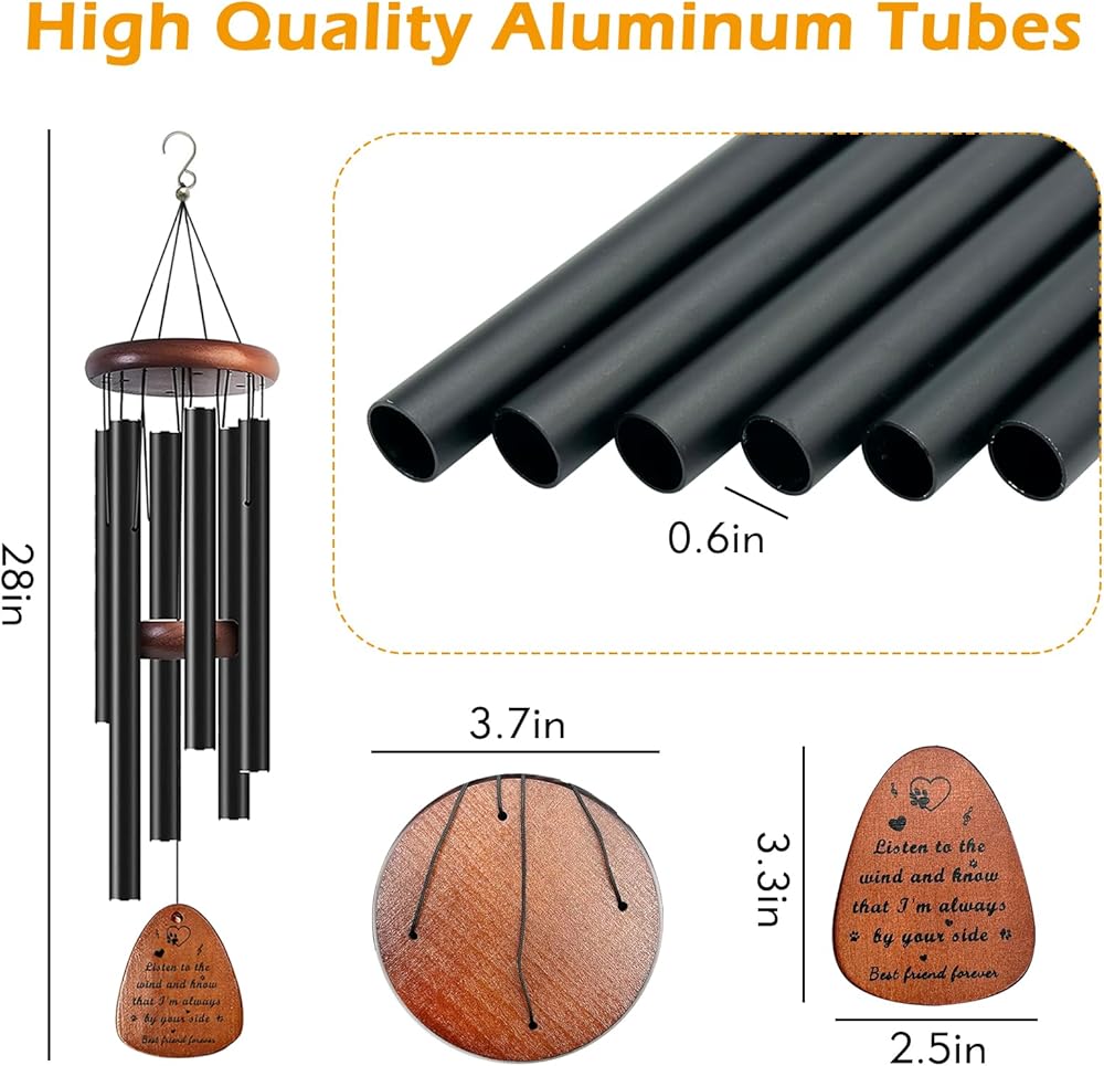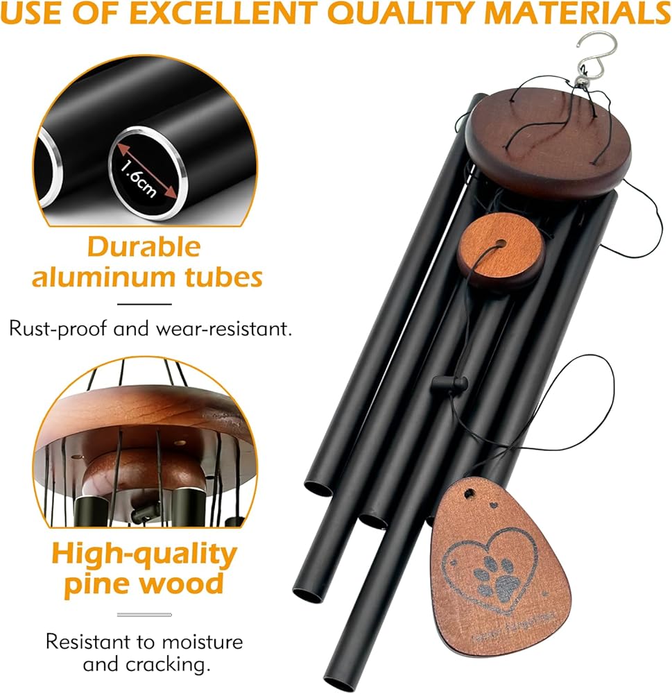 🐾【Premium Material】: Dog remembrance gift are made of aluminum tubes and high quality pine wood, 6 aluminum tubes are weatherproofed to withstand the wind and sun, not easy to rust and durable. Its beautiful ringtone can make people feel calm and relax.