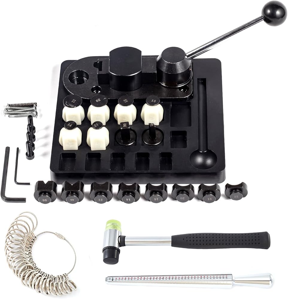 Goyappin Ring Bender Tool for Spoon Rings Heavy Duty, Spoon Ring Making Kit, Ring Press Machine for Making Jewelry Ring Maker, Ring Sizer Measuring Tool Set (Ring Sizer, Ring Mandrel), Rubber Hammer