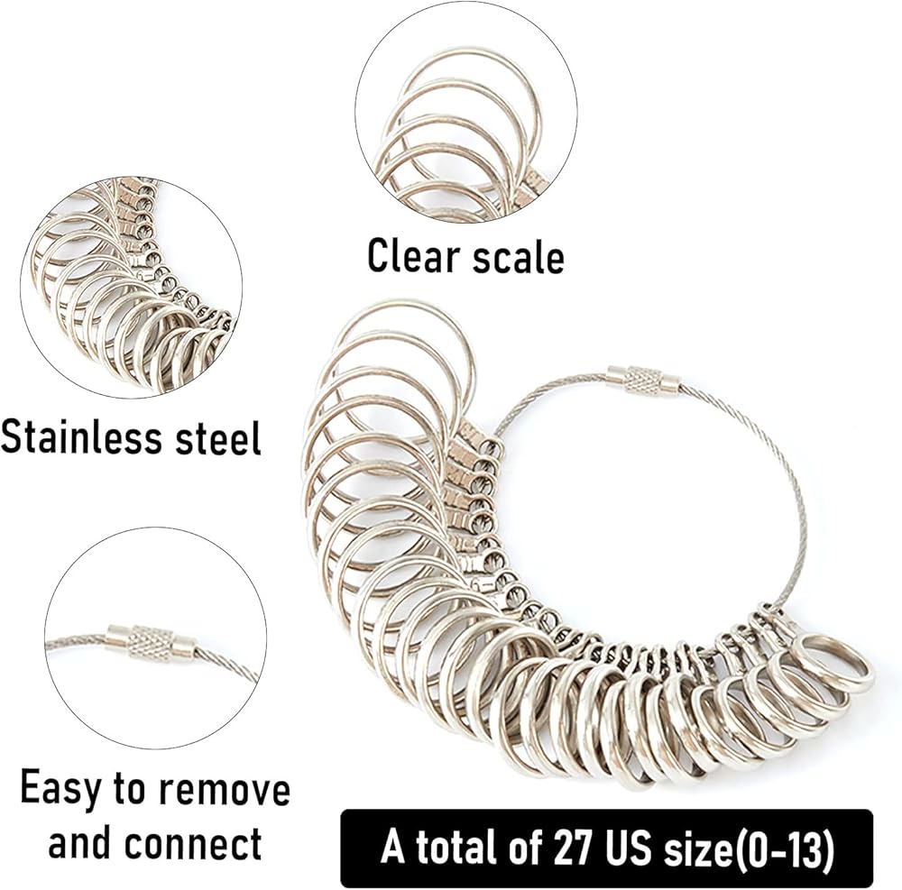 💍【Exceed Higher Quality】The 27pcs ring sizer gauge set is made of stainless steel material for long time using, Each ring is laser engraved with USA Sizes 1-13 including 1/2 half size increments. and the flexible cable with a screw connection for you to open if needed.