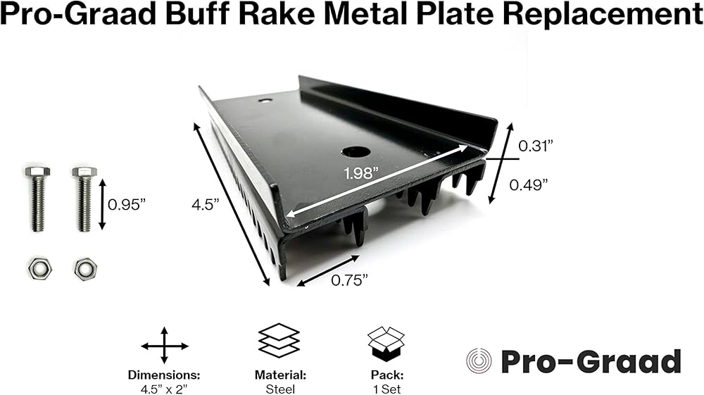 WHAT'S INCLUDED: 1 each Buff Rake Metal Teeth Head Plate, 2 Bolts, 2 Nuts.
