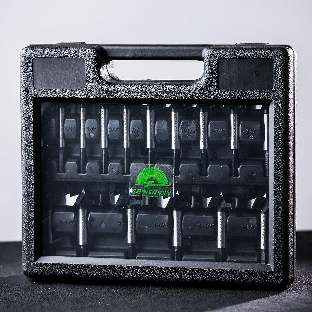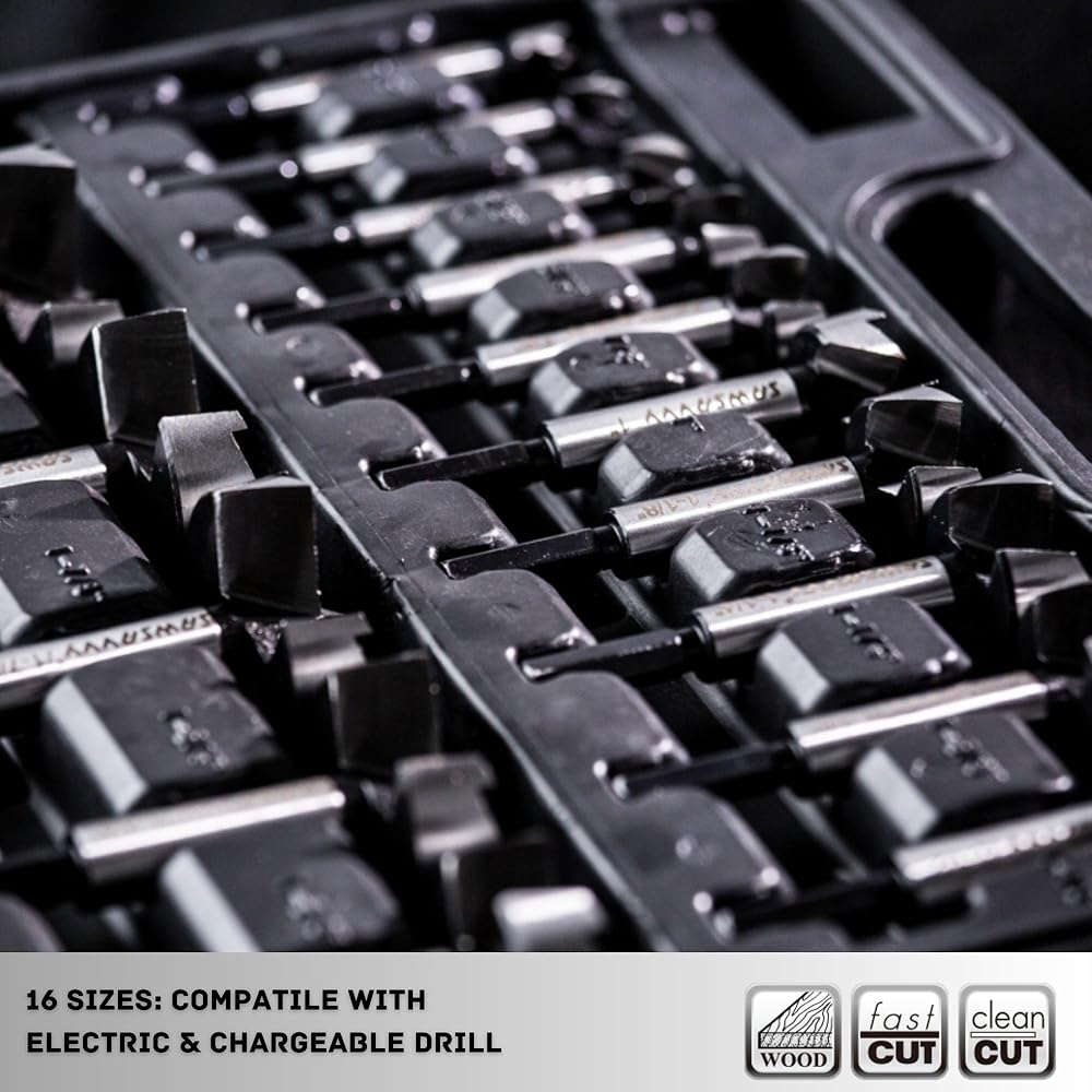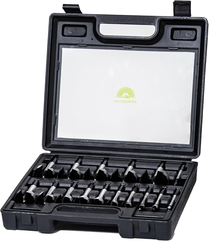 SAWSAVVY Forstner Bit Set 16Pcs Hex Shank, Wood Drill Bits Set with Multi Sided Shan, Forstner Drill Bit Set for Softwood and Hardwood, Plastic, Plywood About this item: ✅ PREMIUM MATERIAL: Crafted from high strength alloy steel and subjected to heat treatment, our Forstner bits boast exceptional toughness and shock resistance, resulting in reduced cutting time and enhanced durability. ✅ OPTIMIZED CUTTING: The multi-sided hex shank is easy to install and tighten, prevent the bit from slipping.Featuring ultra-sharp cutting teeth, our drill significantly reduces cutting time compared to traditional Forstner bits, allowing for effortless drilling of high-quality flat-bottomed and pocket holes. ✅ VERSATILE SIZING: The SAWSAVVY Forstner bit set includes a wide range of sizes from 1/4" (6.3mm) to 2-1/8" (53.98mm), catering to various drilling needs with precision and accuracy. 16PCS includes 1/4" (6.3mm), 3/8" (9.5mm), 1/2" (12.7mm), 5/8" (15.8mm), 3/4" (19.0mm), 7/8" (22.2mm), 1" (25.4mm), 1-1/8" (28.5mm), 1-1/4" (31.7mm), 1-3/8" (34.9mm) ,1-1/2(38.1mm), 1-5/8(41.28mm), 1-3/4(44.45mm), 1-7/8(47.63mm), 2(50.8mm) and 2-1/8(53.98mm) forstner bits. ✅ MULTIPLE APPLICATIONS: Our Forstner bits are ideal for woodworking, industrial hinge installation, model making, and the installation of spherical doors and drawers, offering versatility and precision in various applications. ✅ APPLICATIONS: Hex shank fits any electric power machines and drill presses. QUALITY ASSURANCE: We stand behind the quality of our products. If you're not completely satisfied with your purchase, please contact us for a full refund within 30 days. Your satisfaction is our priority, ensuring a risk-free shopping experience.