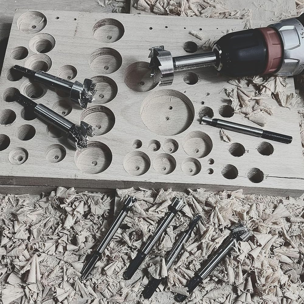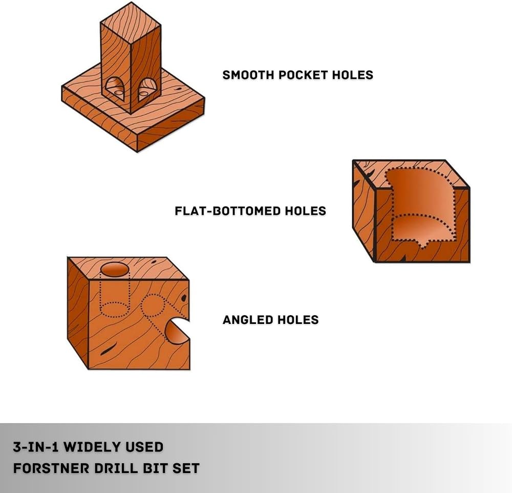 • ✅ PREMIUM MATERIAL: Crafted from high strength alloy steel and subjected to heat treatment, our Forstner bits boast exceptional toughness and shock resistance, resulting in reduced cutting time and enhanced durability.