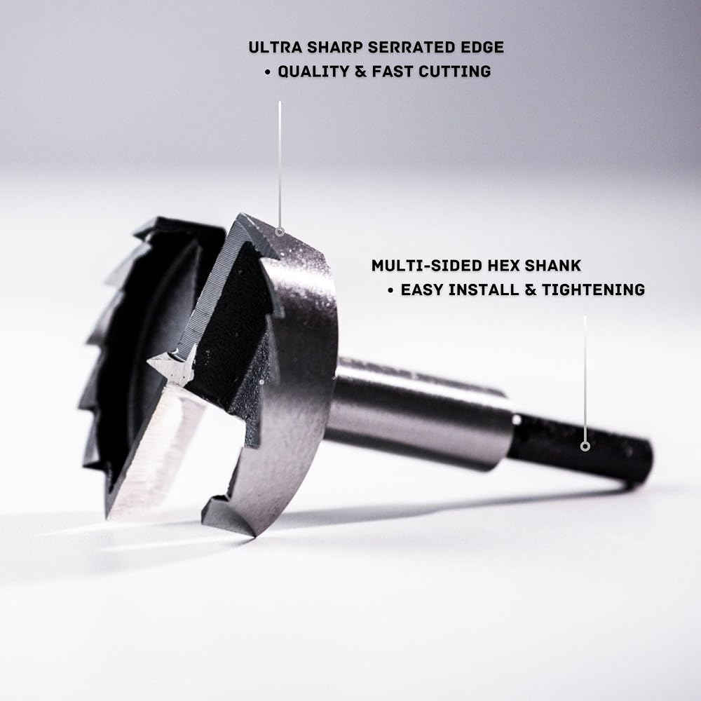 • ✅ OPTIMIZED CUTTING: The multi-sided hex shank is easy to install and tighten, prevent the bit from slipping.Featuring ultra-sharp cutting teeth, our drill significantly reduces cutting time compared to traditional Forstner bits, allowing for effortless drilling of high-quality flat-bottomed and pocket holes.