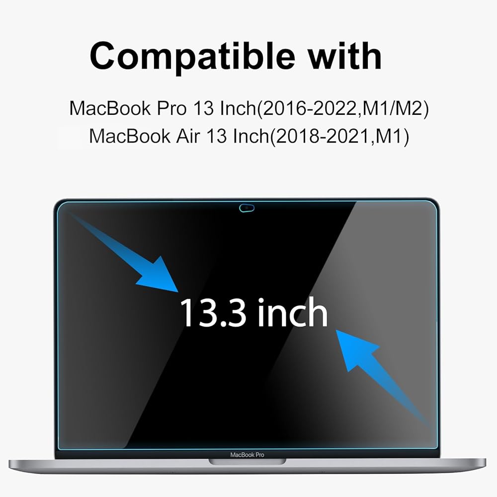 【Blue Light Blocking Screen Protector】The anti-blue laptop screen protector specially designs for your for MacBook Pro 13 Inch (2016-2021 M1, 2022 M2)(Model: A1708, A1706, A1989, A2159, A2251, A2289, A2338) or Macbook Air 13 inch (2018-2021 M1)(Model: A2337 A2179 A1932), please measure the computer screen dimensions before purchasing.
