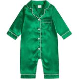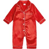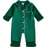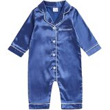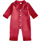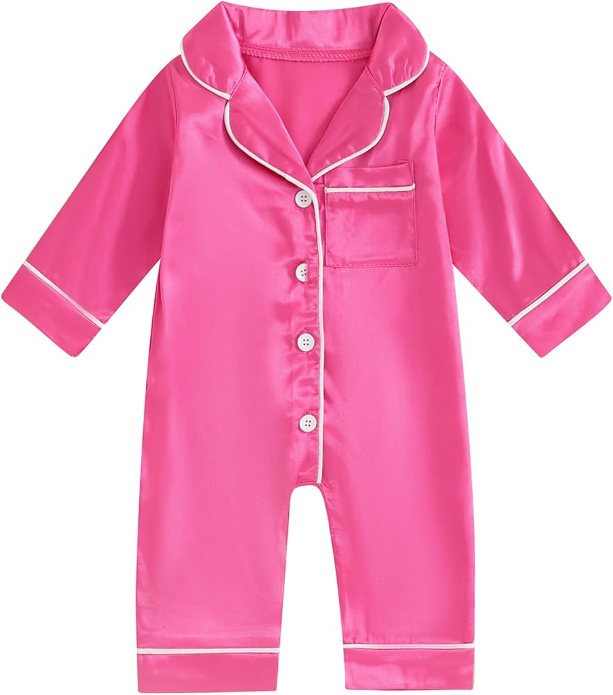 Newborn Baby Boy Girl Silk Pajamas Jumpsuit Button Down Long Sleeve One Piece Romper Pjs Satin Infant Sleepwears