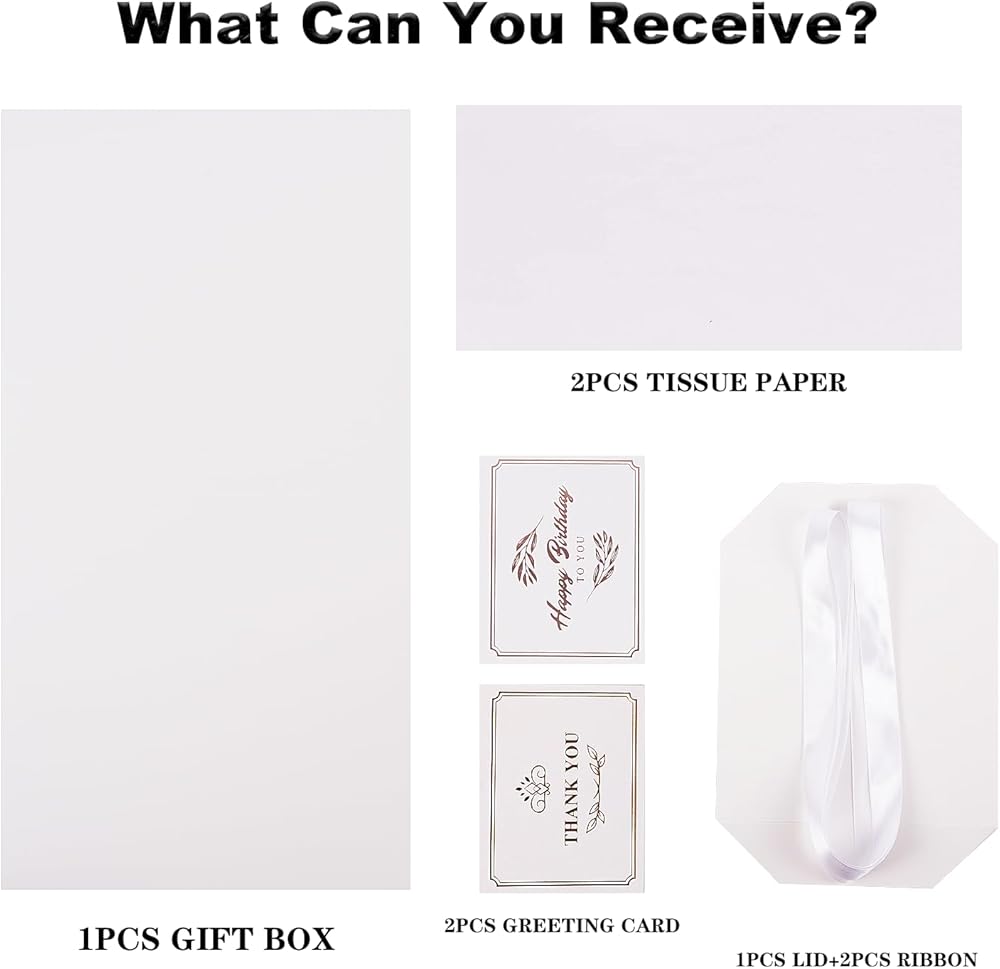 What will you get: You will receive a pink box with lid and comes with a beautiful ribbon, and complete with 2pcs white tissue paper inside. The length of the ribbon is 95inch, 240cm, and you can fold it into a beautiful bow.