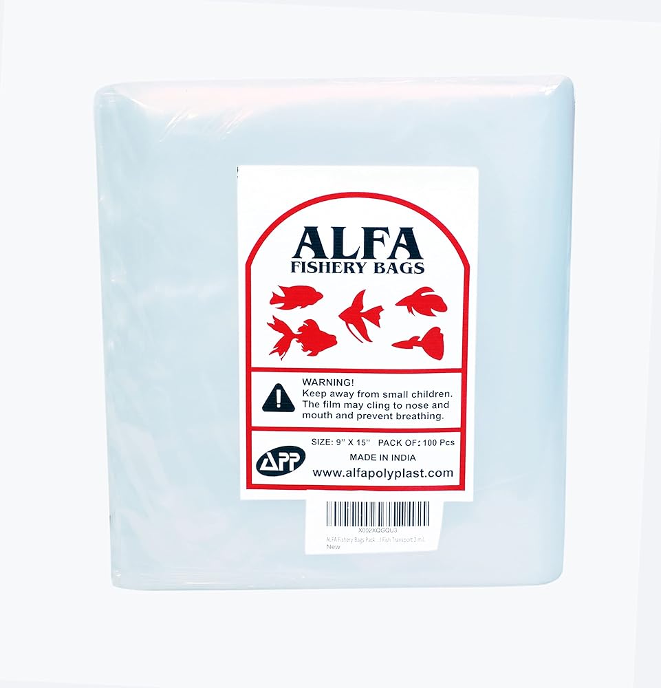 Pack of 100 PLASTIC FISH BAGS 9" is unprinted clear bags. These versatile bags are a perfect solution for transporting pet and feeder fish. These storage bags are made from low density polyethylene and can be recycled. Thickness 2 Mil.