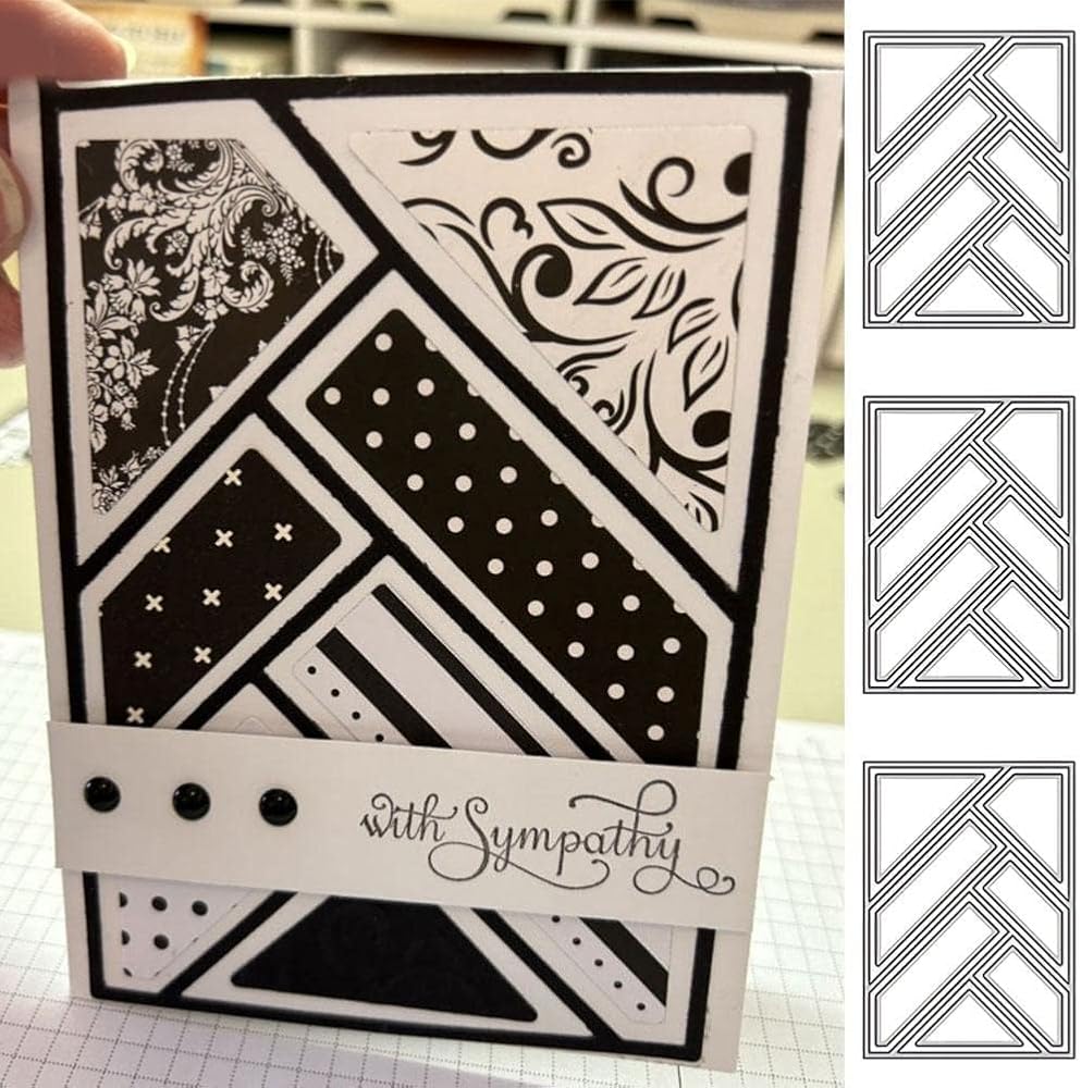 Silver Cutting Dies for Card Making Rectangle Triangle Background Metal Die Cuts Hollow Frame Embossing Template for DIY Scrapbooking Craft Album Decor Die-Cutting and Embossing