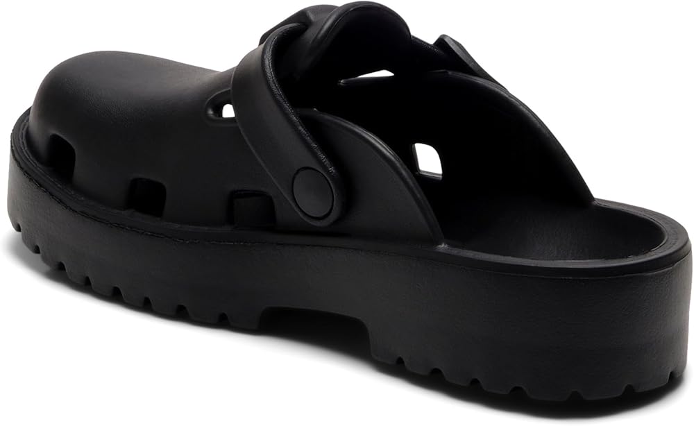 Ready for anything and extra versatile, these easy slip-on clogs are featured in a one-piece, molded EVA with a tread platform sole and buckle detail for a comfy, stylish pair. **Features:** Slip-on style, backless, molded EVA for a flexible design, round toe, cutouts, adjustable buckle detail, tread platform sole, molded footbed **Why We