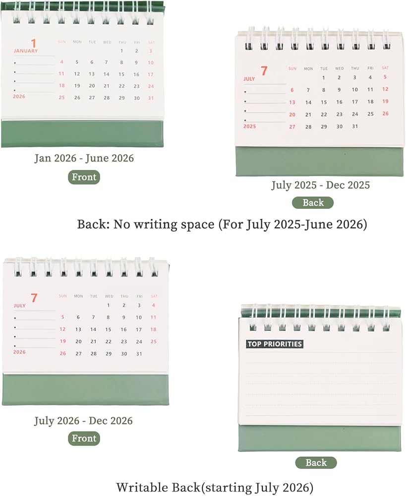 Koqye Small Desk Calendar 2025-2026, July 2025 to Dec 2026 Standing Flip Small Desk Calendar, Twin-Wire Binding Flip Standing Desktop Calendar for Home Office (5 Colors)