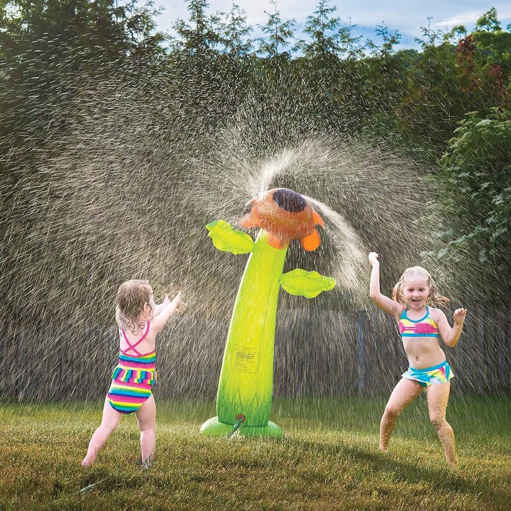 UNLIMITED FUN - Kids will spend hours of fun outdoors, cooling down on those hot summer days. Simply use the sunflower sprinkler for maximum outdoor fun for the whole family.