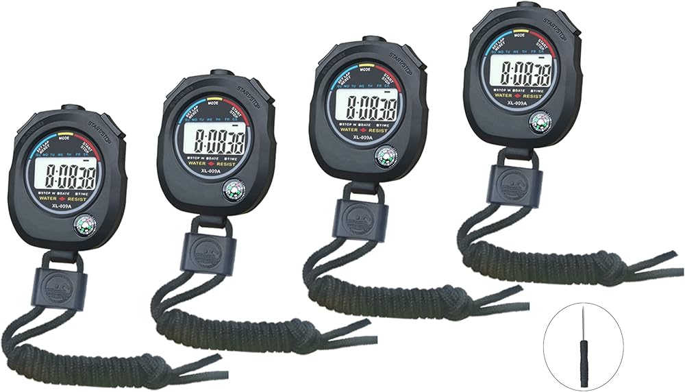 Lightweight and Portable - The Stopwatch is made of hard plastic and is light weight. Each stopwatch comes with a black lanyard that is tied at the end. You can take it with 1 hand , put it in your pocket , or stowed around the neck with the lanyard