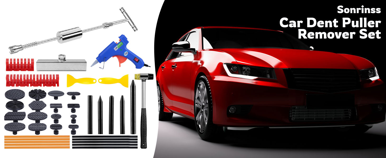 🚗Comprehensive Dent Repair Kit: The Sonrinss Dent Puller Kit is a complete set of professional-grade tools designed specifically for paintless dent removal. It includes everything you need to effectively repair dents on your car's bodywork.