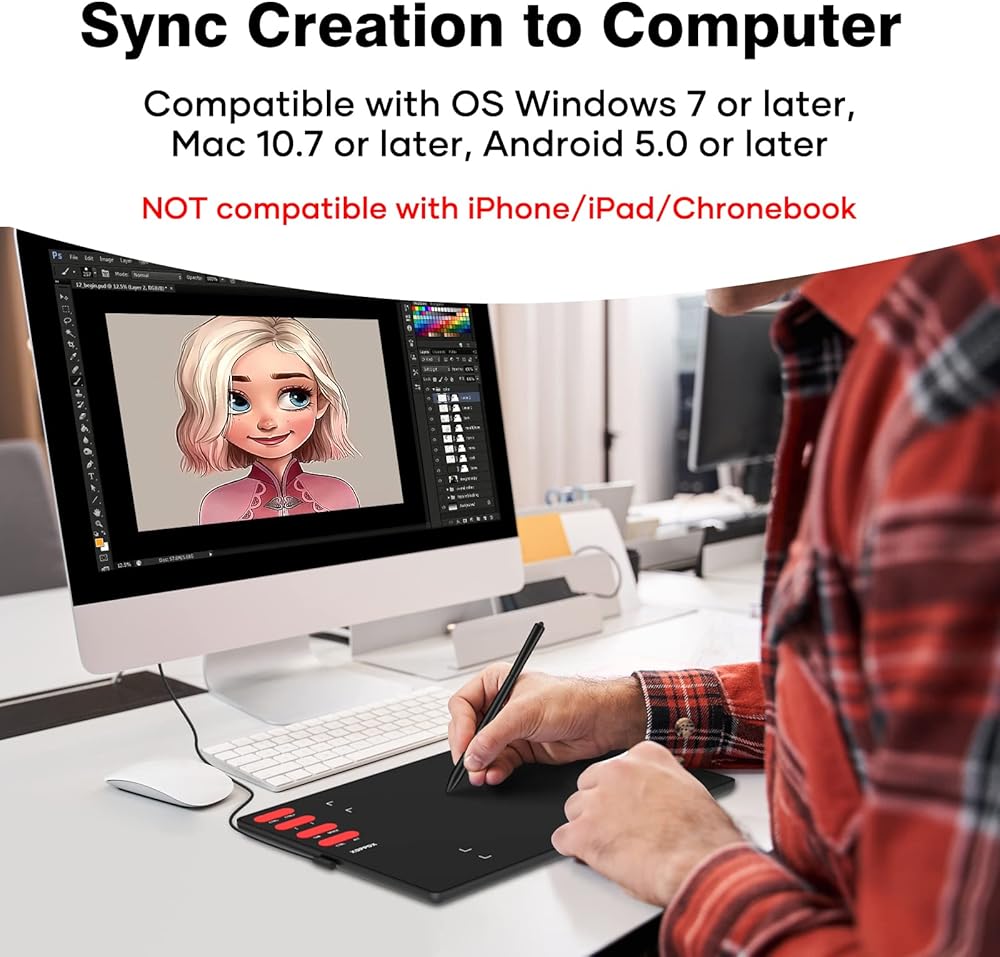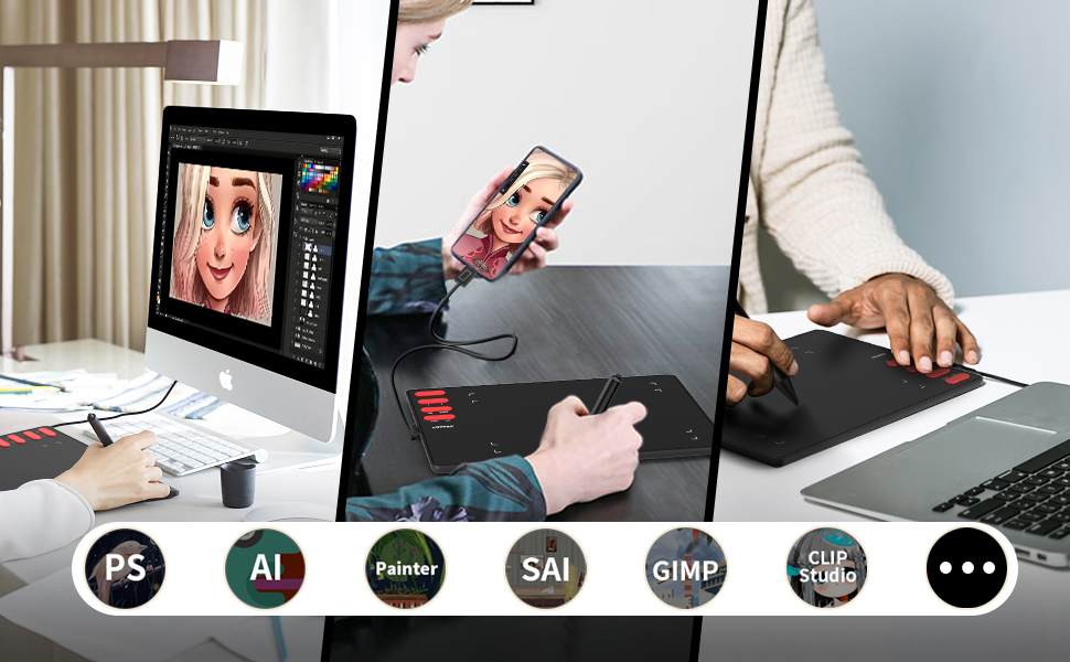 Wide Compatibility -XOPPOX graphics drawing tablet compatible with Mac OS (10.7 and above), Windows (7/8/10/Vista/XP), Android (5.0 and above), and most design programs like PS/SAI/Illustrator/Corel Painter/Clip Studio and other drawing software.