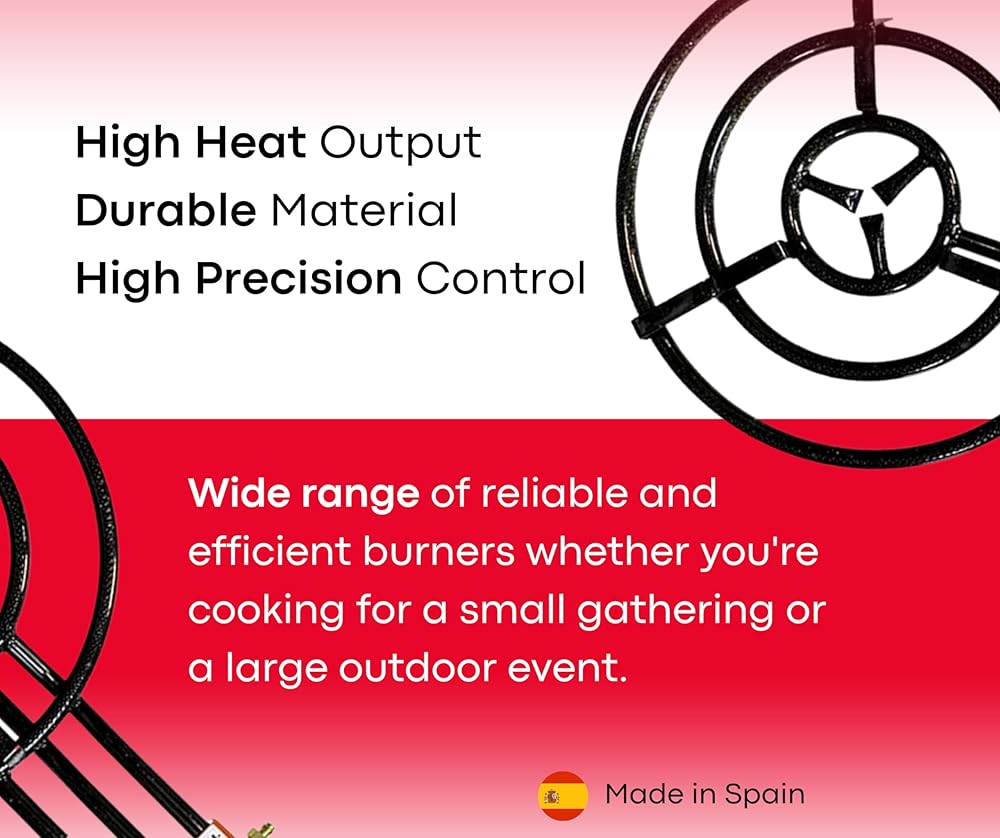 POWERFUL, EVEN HEAT DISTRIBUTION: The Garcima 60 propane premium burner delivers top-tier cooking performance thanks to its 87,800 BTU output. Four rings of flame supply even heat under the entire paella pan.