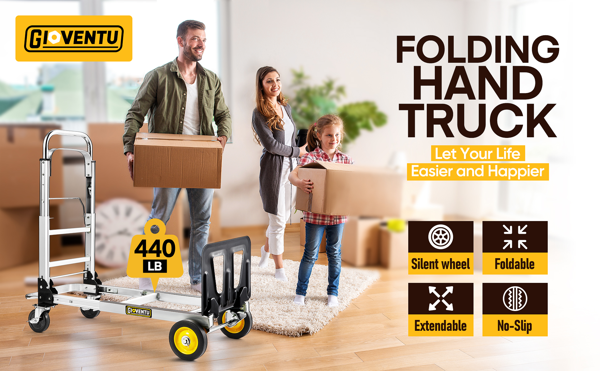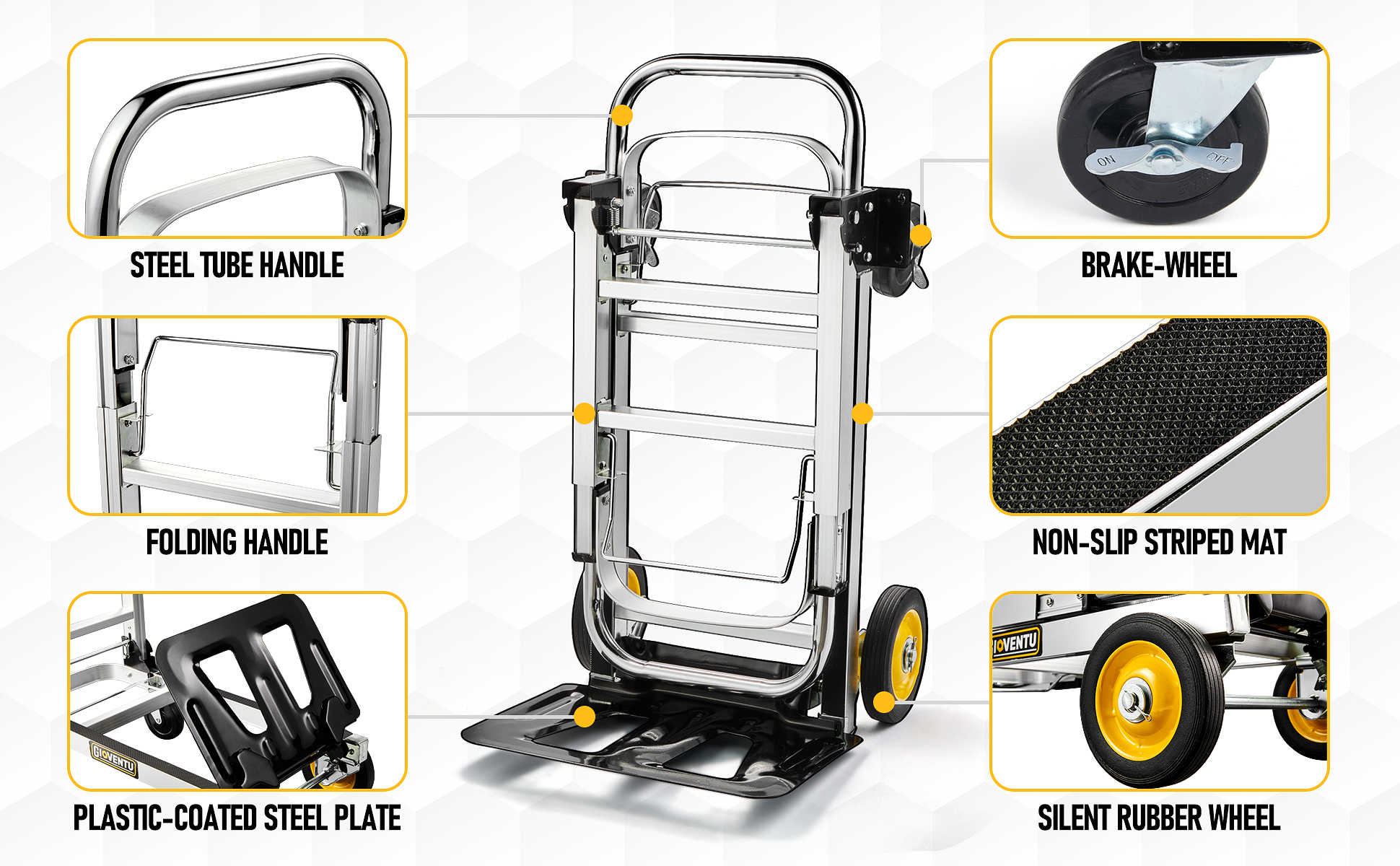⌛【Convertible Purpose】It can be quickly switched as a 2-Wheel Upright Hand Truck for 220 lb or a 4-Wheel Platform Cart for 440lb loading capacity without tools. That is great to own a regular dolly or heavy duty hand truck!