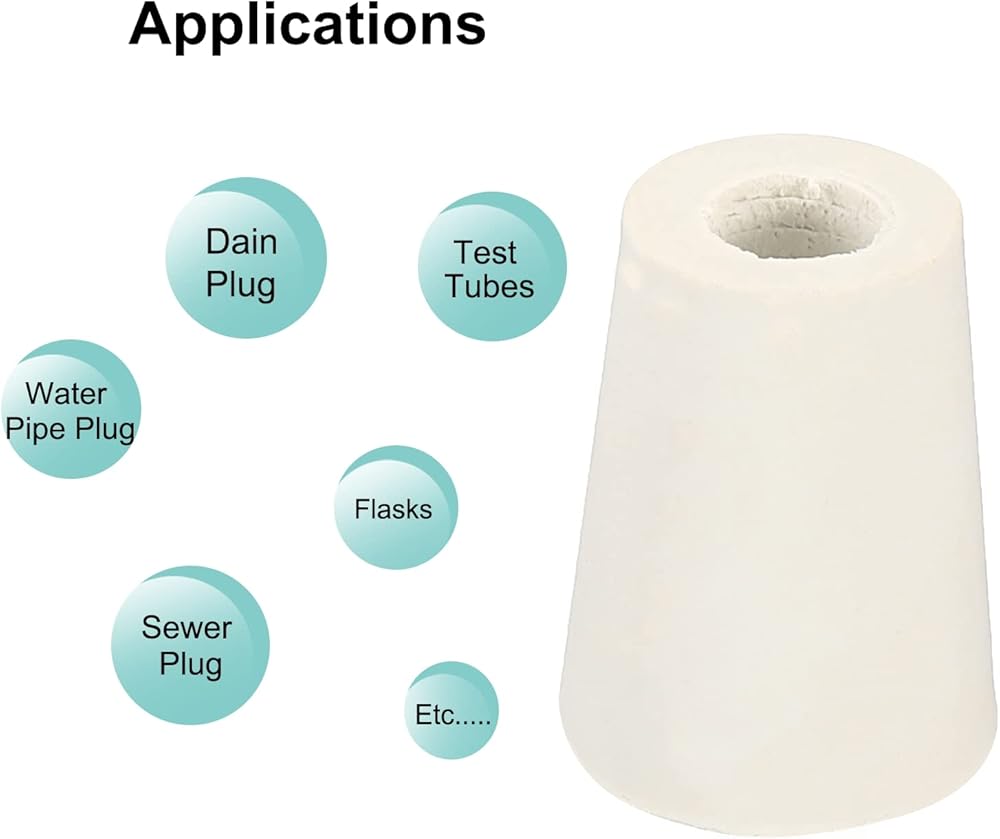 The Rubber Tapered Plug is great for laboratory utensils such as flasks, test tubes, or other laboratory applications, also can as a sewer plug, water pipe plug, or drain plug.