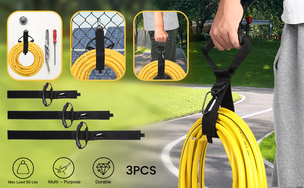 🎯 Indoor and Outdoor Use: The multifunctional storage belt is easy to hang extension cords, hoses, ropes, no more troubles about ropes wrapped around corners, with convenient handles, allowing you to not only hang long hoses and wires in indoor garages or storage rooms, but also easily bundle, organize and carry your outing equipment when you go out, you can choose different styles to meet your needs.