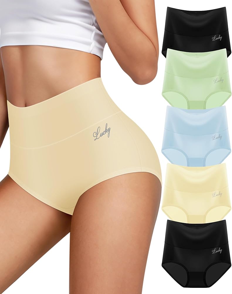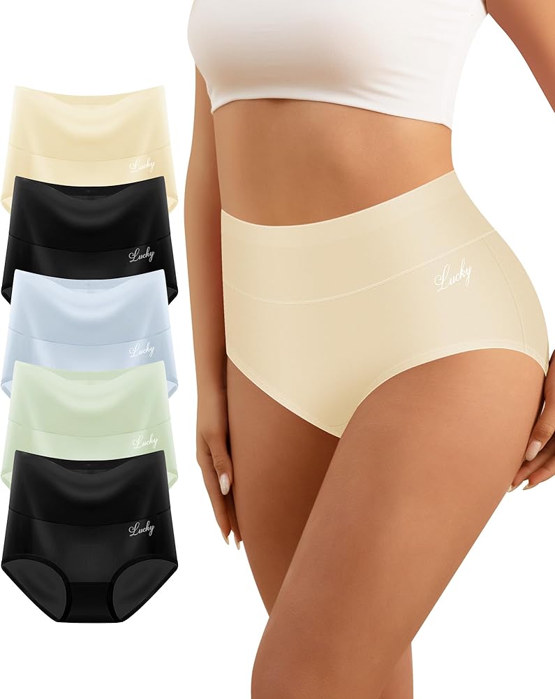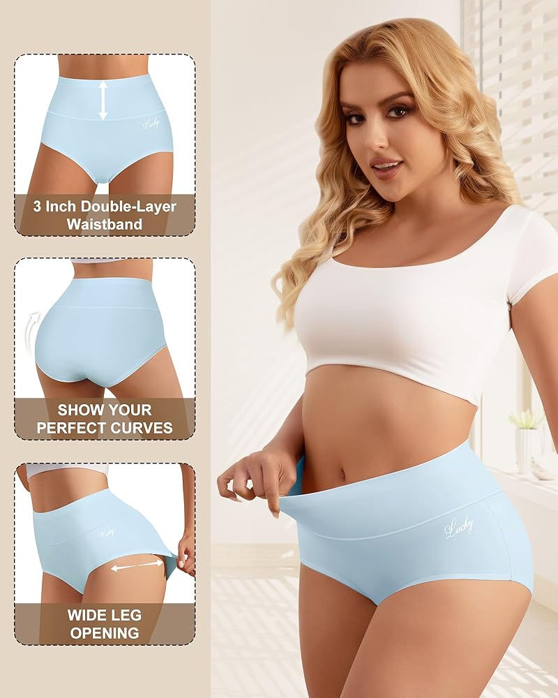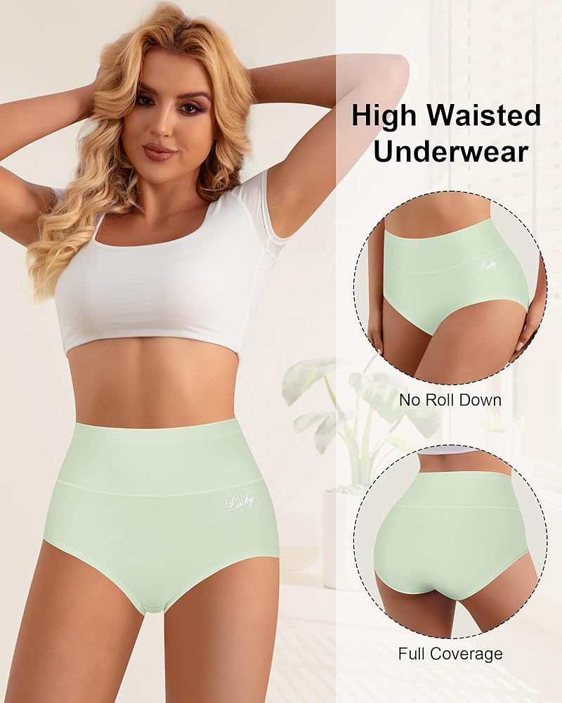 【HIGH RISE COVERED WAISTBAND】Women's high waisted tummy control underwear has a 3-inch high waistband design with soft stretchy double-layer fabric covered waistband that stays in place at the waist. No scrolling or squeezing. Women's panties offers light tummy control support with nice soothing feeling that's not too tight or compression, perfect for moms recovering from C-section.