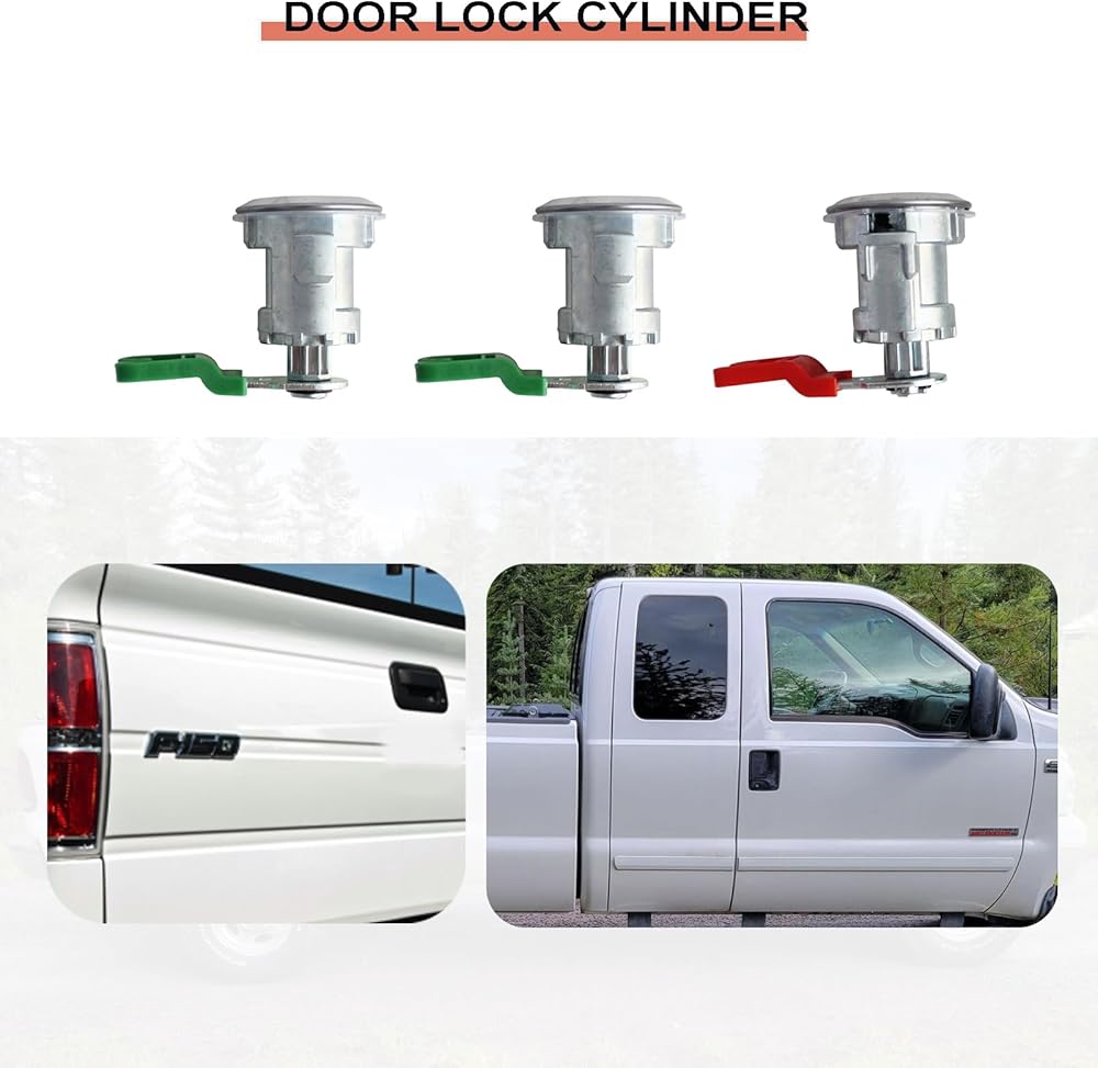 【PACKAGE LIST】The kit includes 1x driver door lock cylinder, 1x passenger door lock cylinder, 1x tailgate lock cylinder, and 1x ignition switch cylinder with keys.