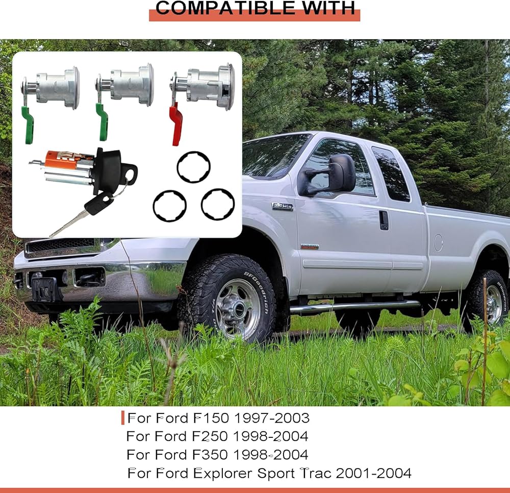 Eterpace Ignition Switch Cylinder & Door Lock Cylinder, Compatible with Ford Explorer Sport Trac/F150/F250/F350 1997-2004, Replace# LC6177 + DL5885 + 322347 + 597638(No Chip)